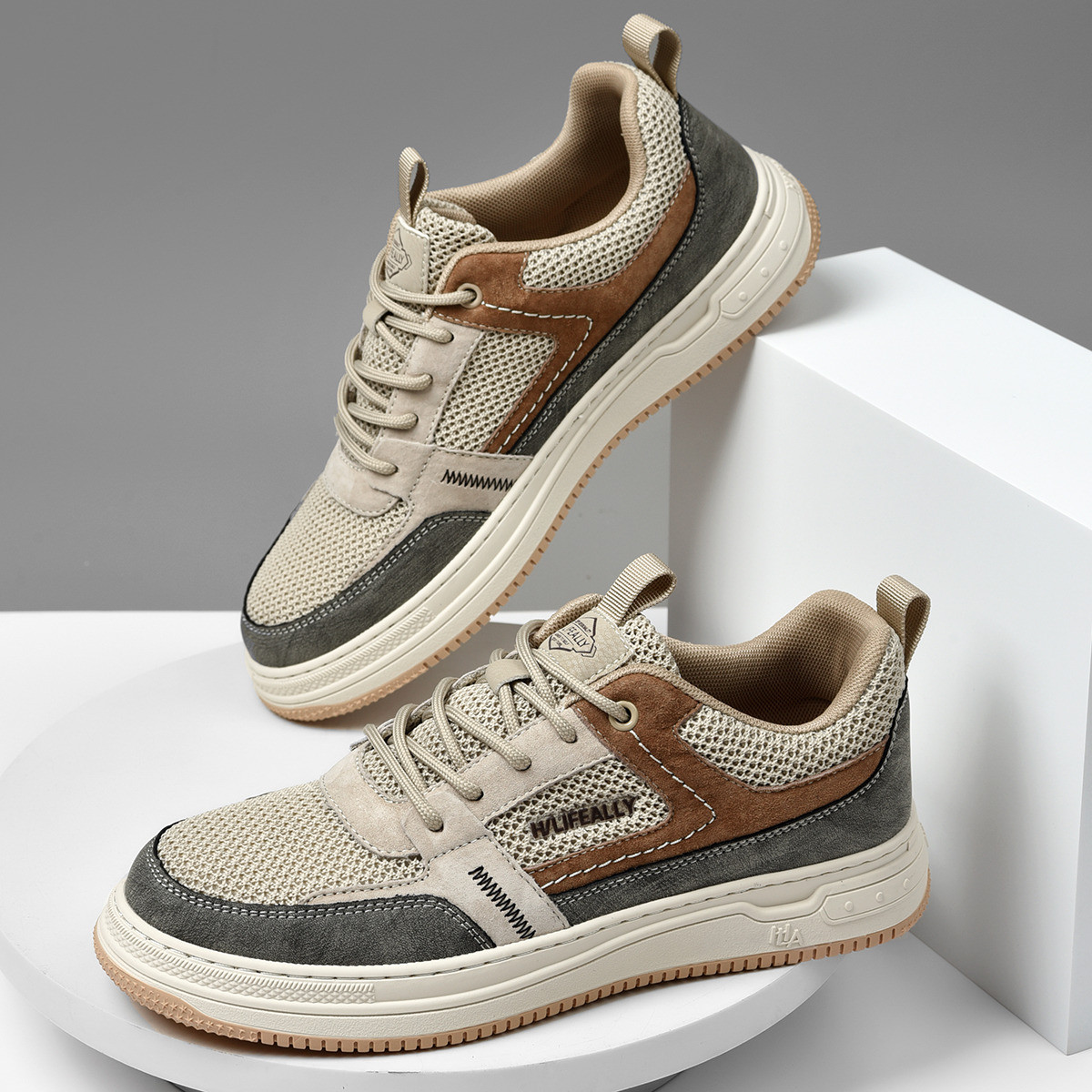 【网面透气】25夏季款男鞋拼色百搭板鞋男厚底镂空网布小白鞋男 782100
