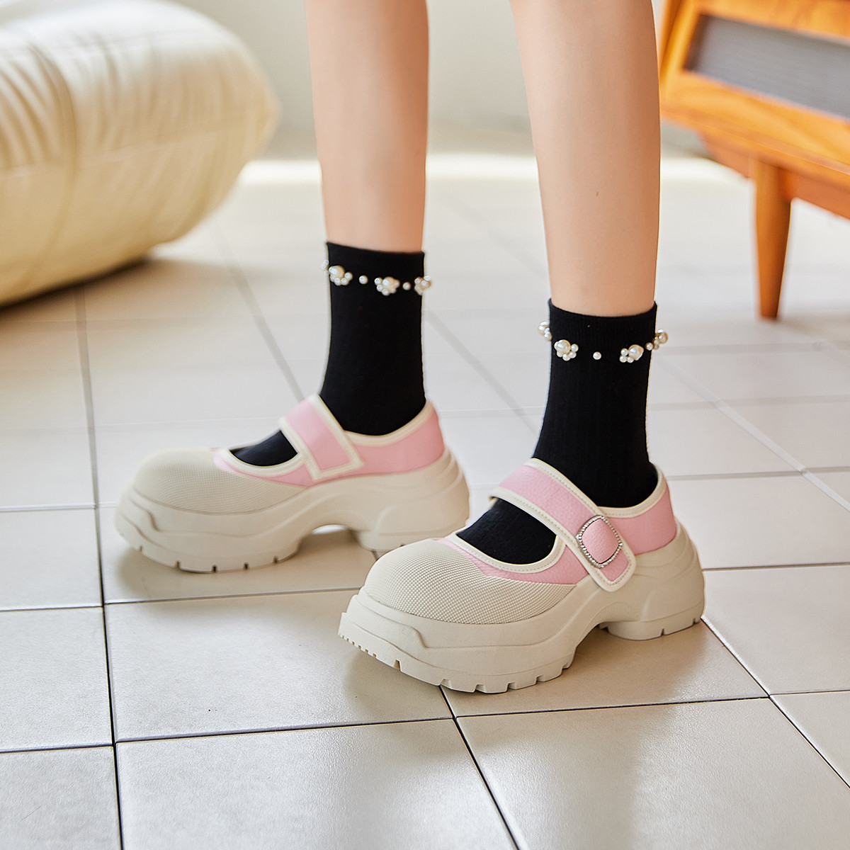 单鞋女士单鞋丑萌大头女鞋单鞋魔术贴厚底玛丽珍鞋增高 608591