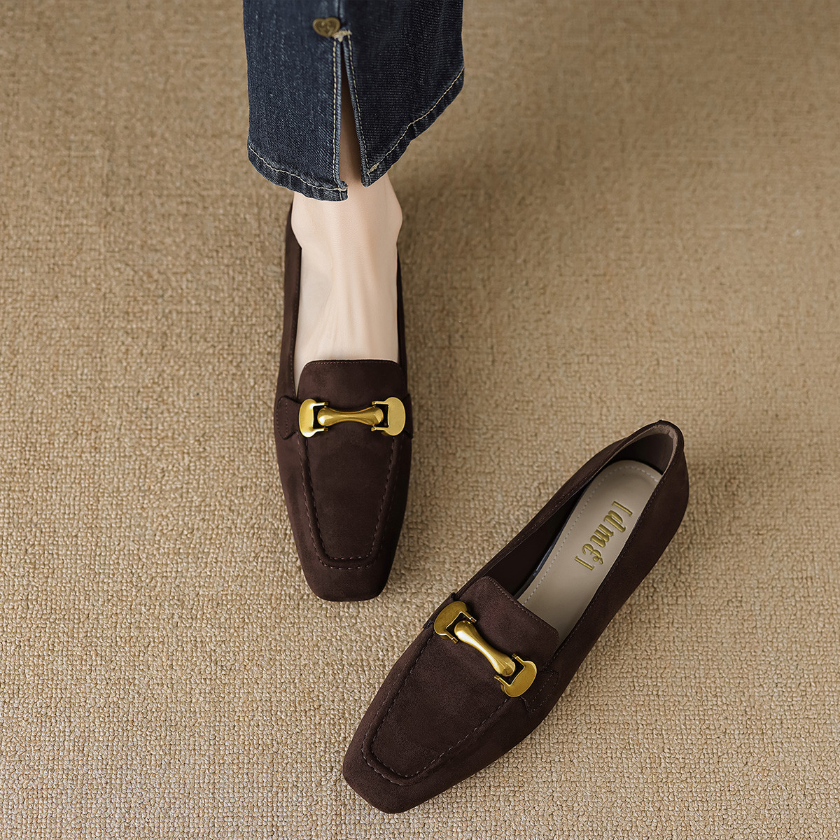 春复古百搭美拉德色纯色深口金属饰扣乐福鞋女单鞋 846465