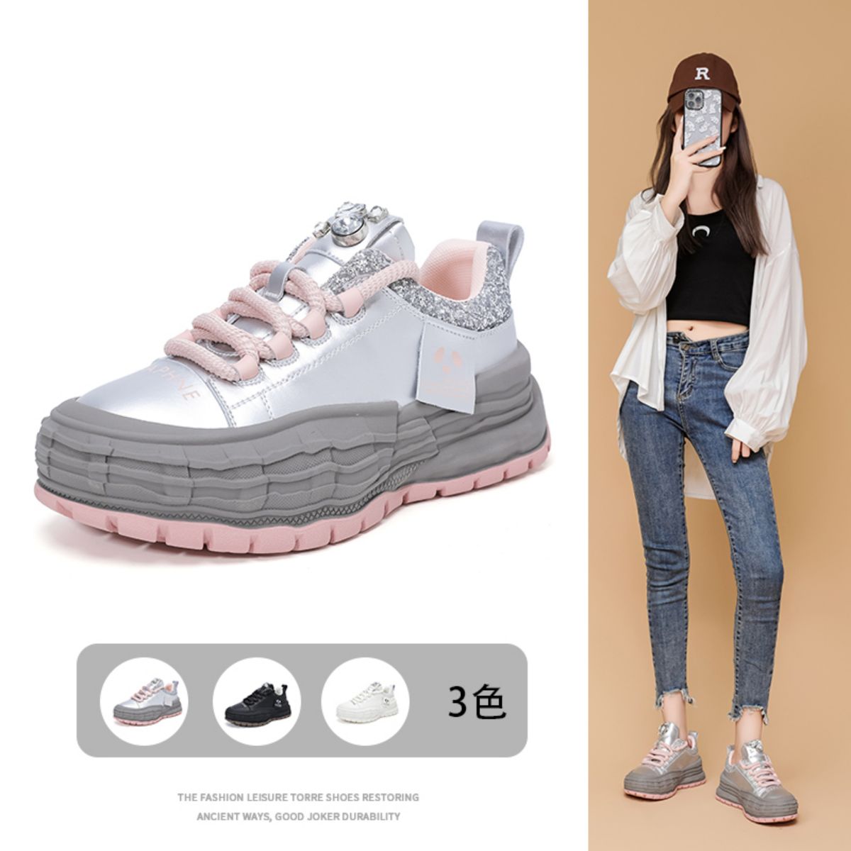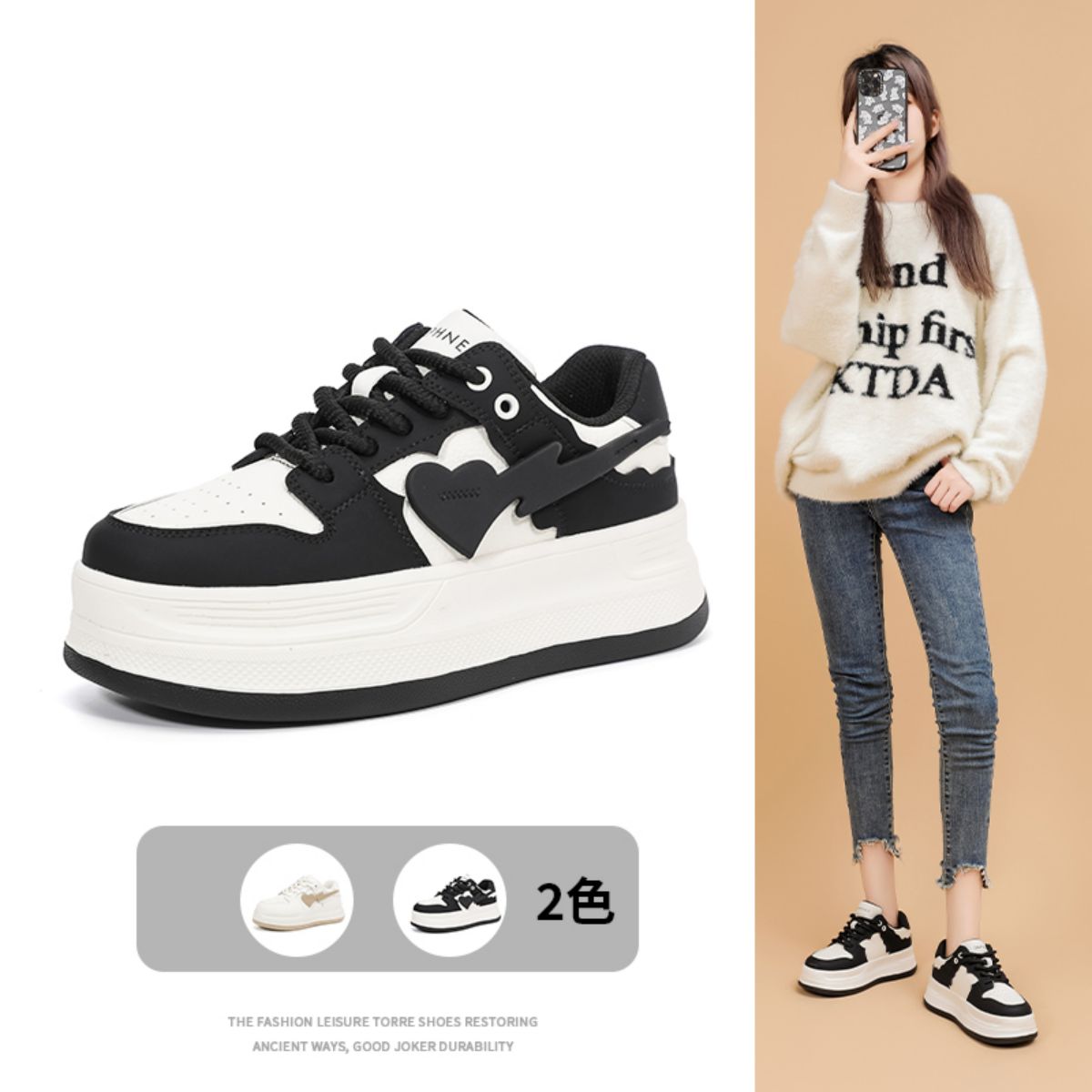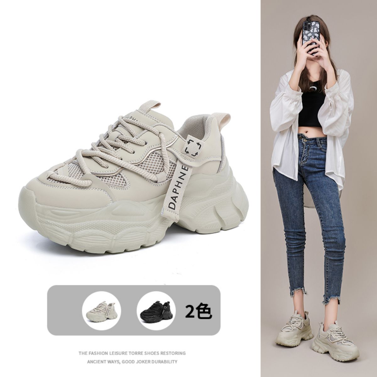 【百搭鞋女】春夏板鞋潮流百搭休闲运动鞋厚底鞋女鞋 605783