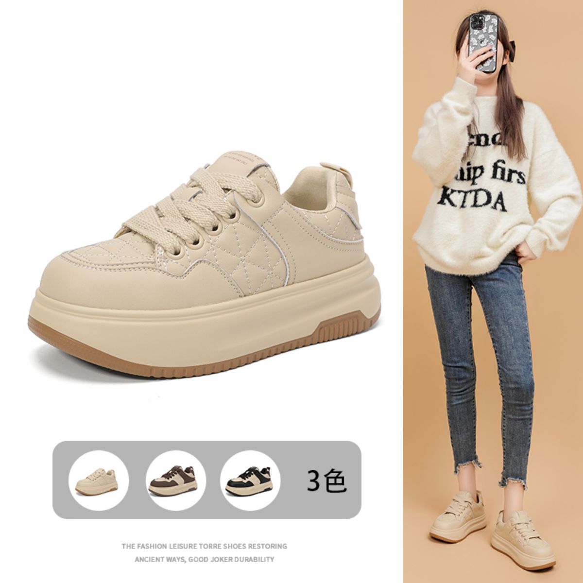 2025春夏新款时尚板鞋厚底鞋百搭学生增高鞋舒适运动休闲鞋 181975