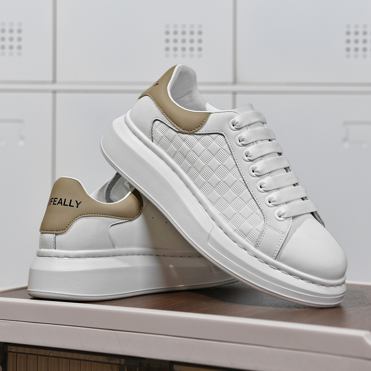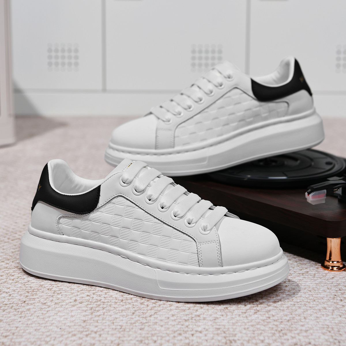 鞋子休闲鞋男士板鞋厚底男板鞋休闲百搭格纹小白鞋男鞋 480911