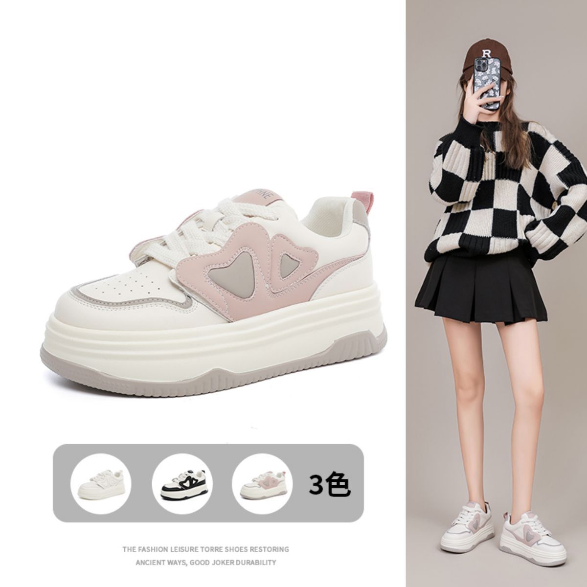 春季潮流运动鞋厚底板鞋百搭小白鞋简约设计女鞋时尚韩版休闲鞋 160346