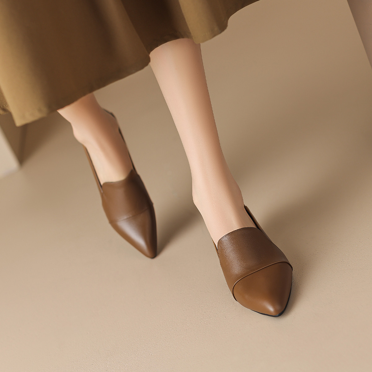 【牛剖层革】平底通勤鞋女士单鞋春秋款一脚蹬浅口单鞋女夏单鞋女 258624