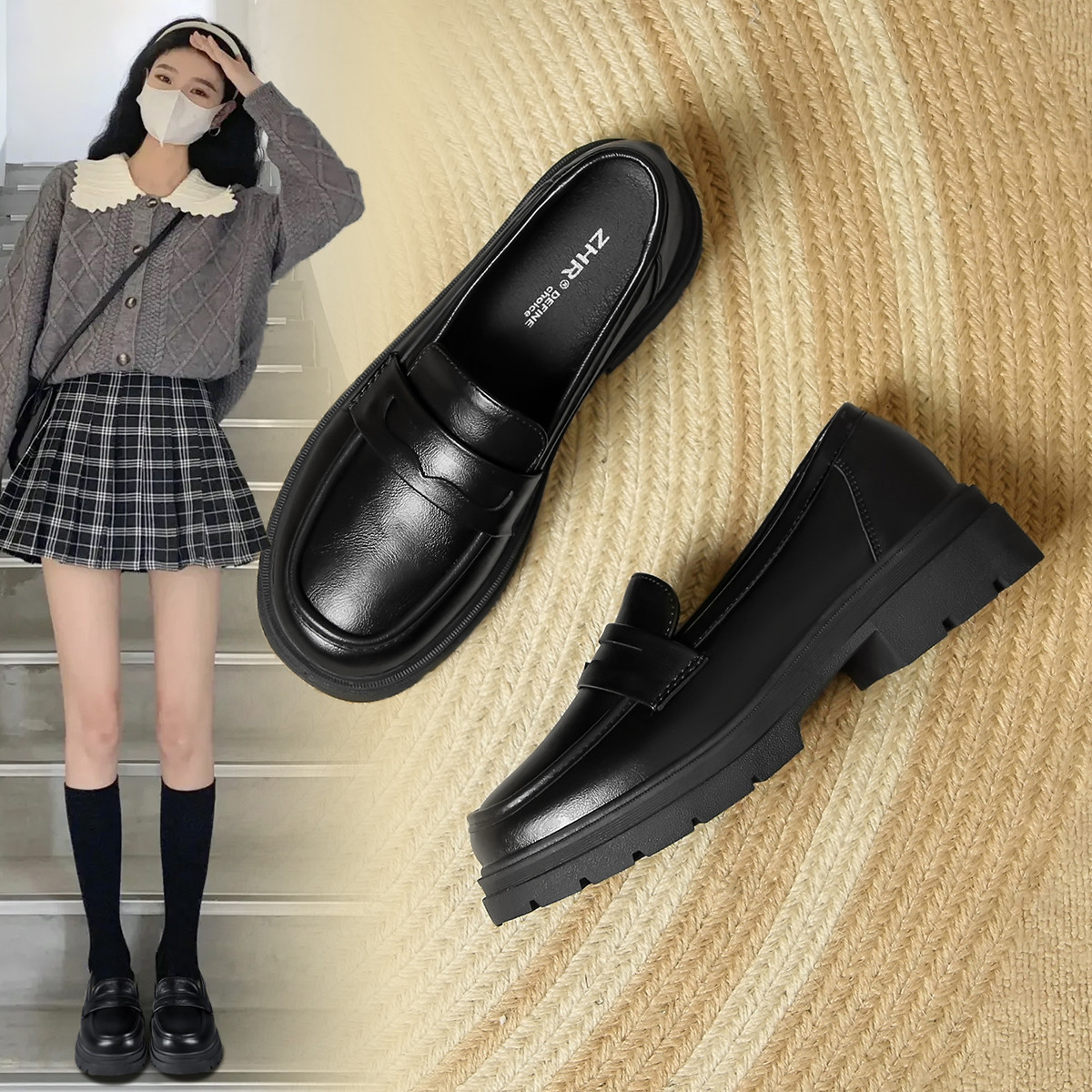 【通勤优选】简约英伦风通勤鞋舒适一脚蹬女鞋粗跟女单鞋乐福鞋女 529920
