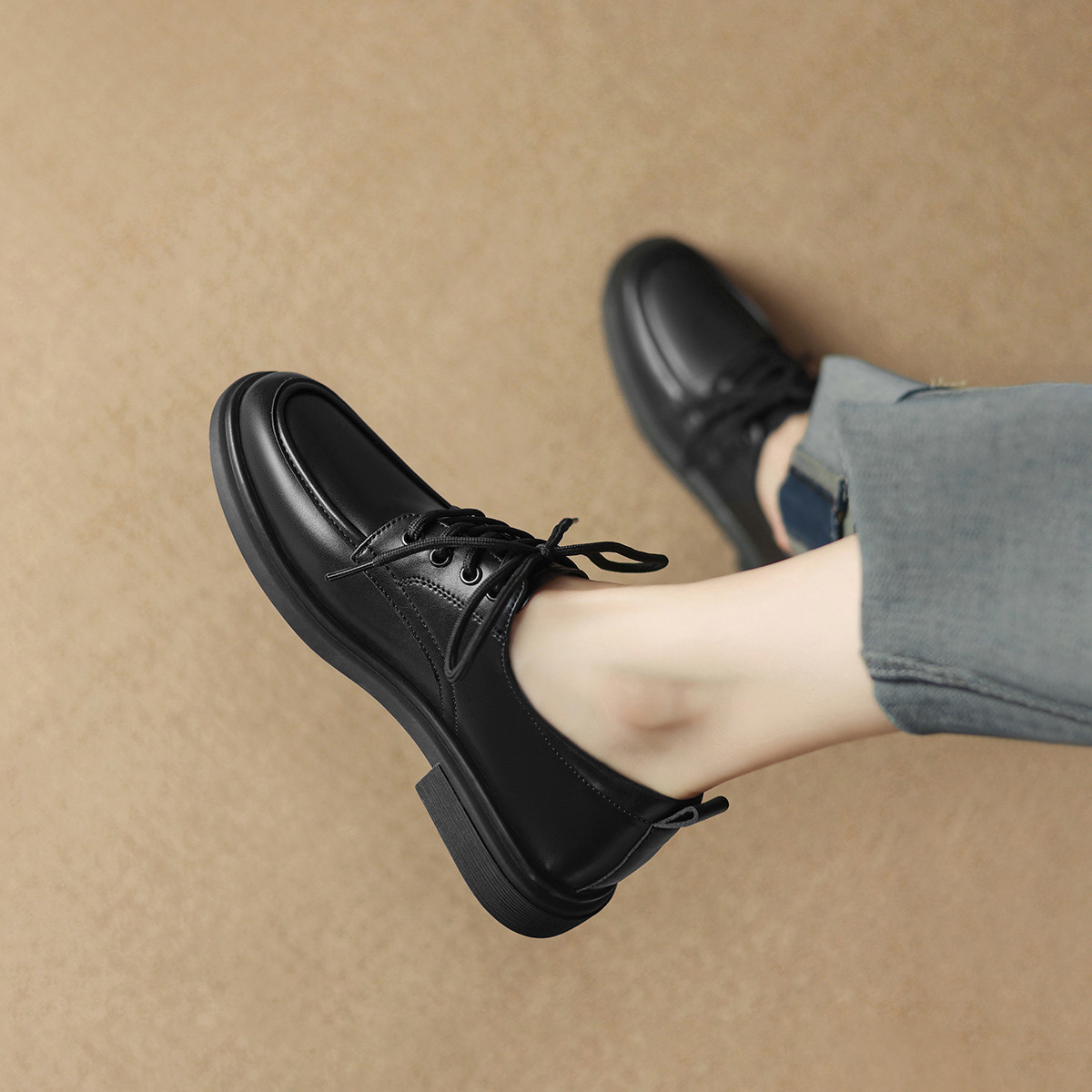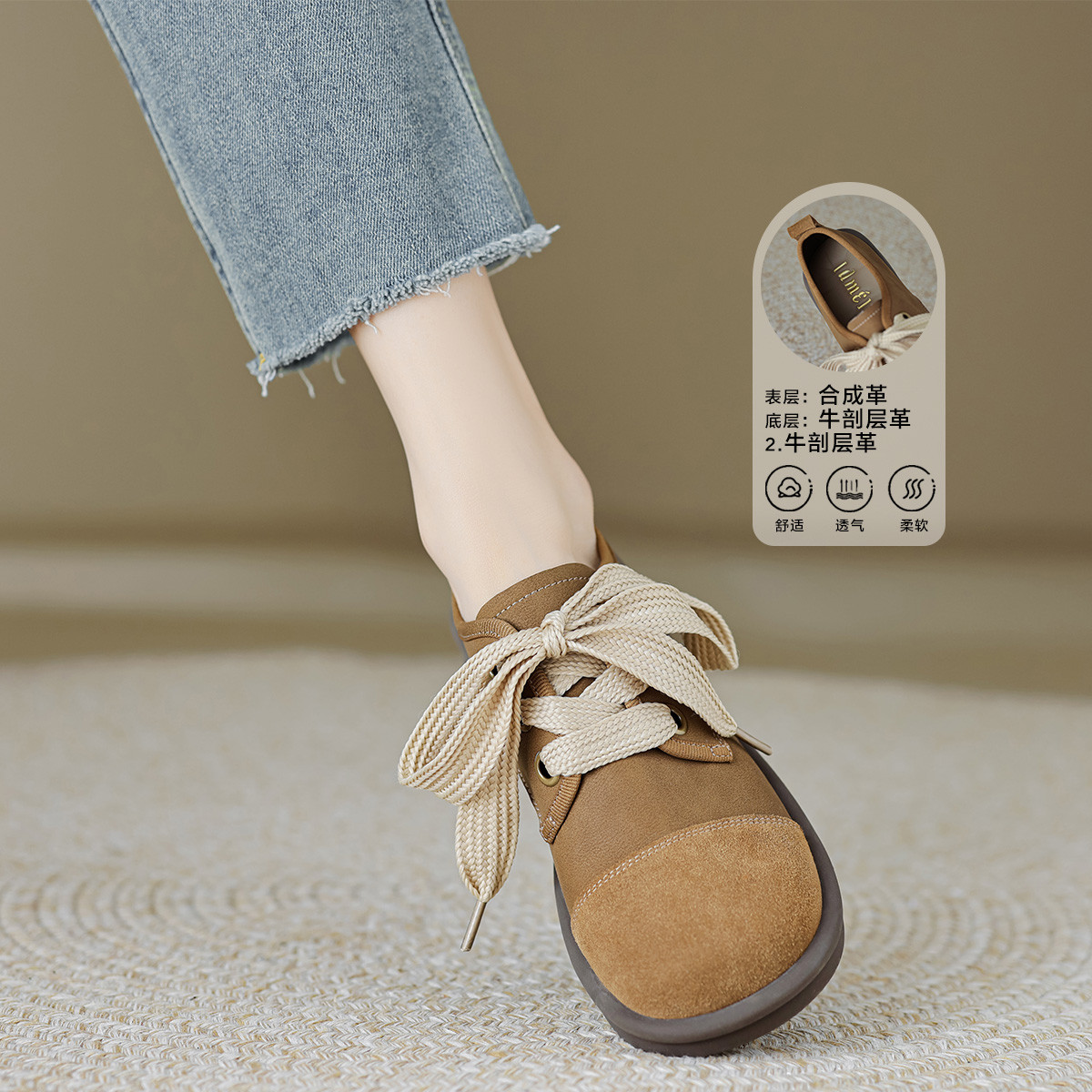 春秋潮流复古百搭美拉德风拼接扁鞋带娃娃头女单鞋 281665