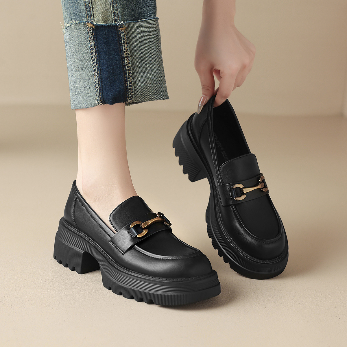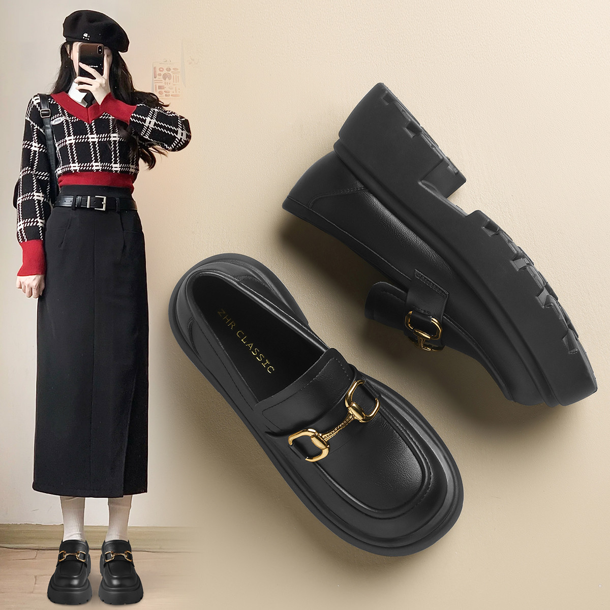 【秒高5.5】学院风一脚蹬黑色小皮鞋子女单鞋女厚底乐福鞋女鞋 487680