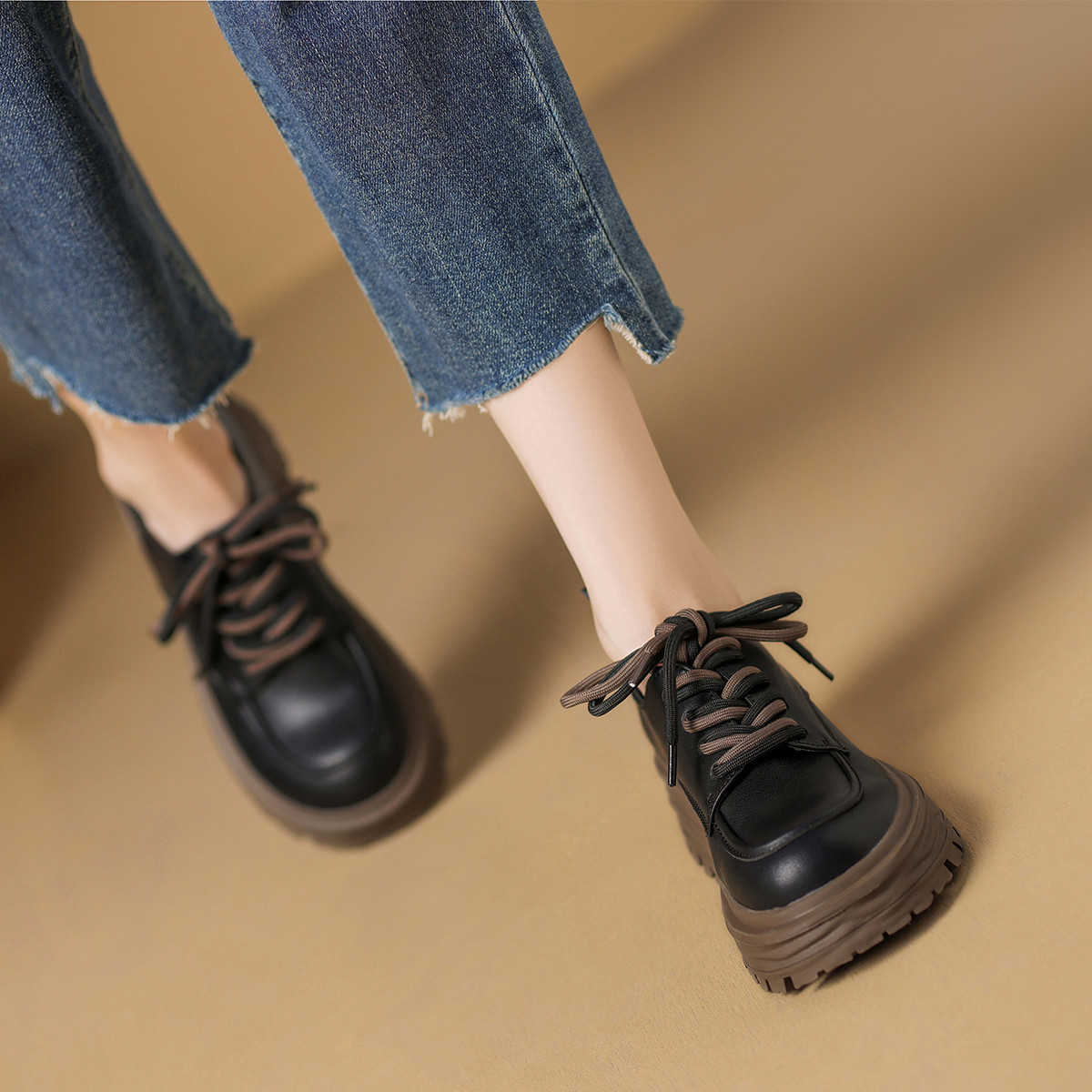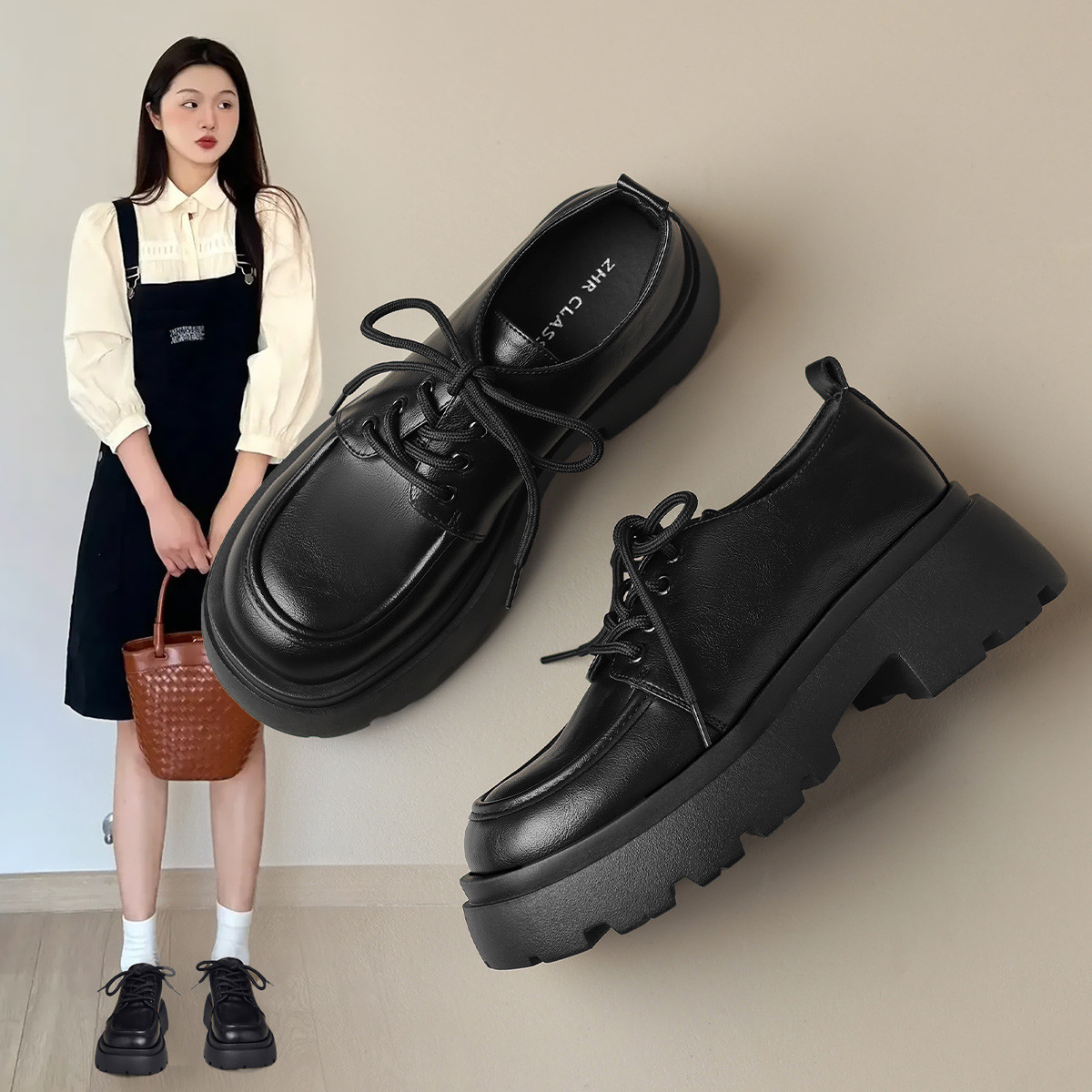 【双色鞋带】春秋鞋子女款厚底百搭乐福鞋女英伦单鞋女小皮鞋女鞋 460096
