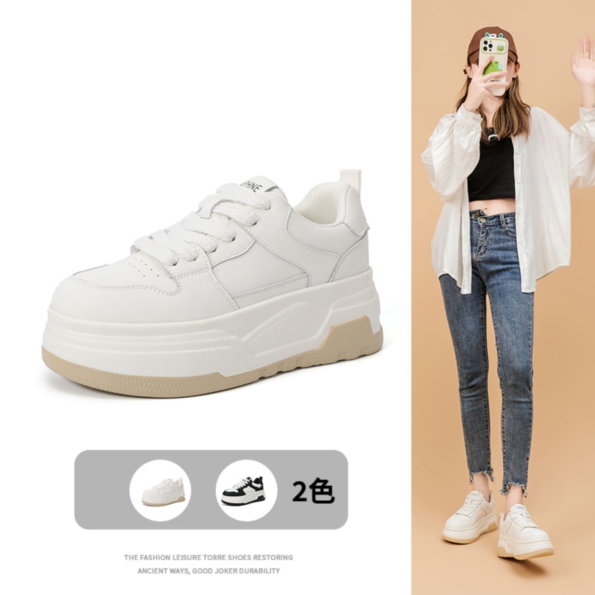 春夏女厚底鞋休闲鞋潮流运动鞋百搭复古简约设计女鞋 000855
