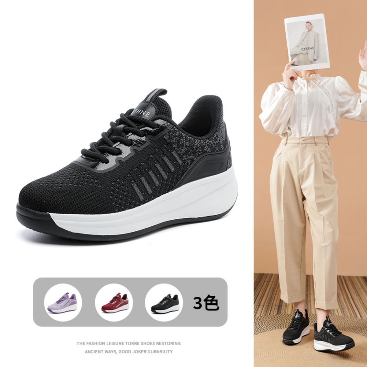 春夏女鞋百搭舒适健步鞋耐磨轻便通勤鞋日常休闲运动鞋厚底鞋 603543