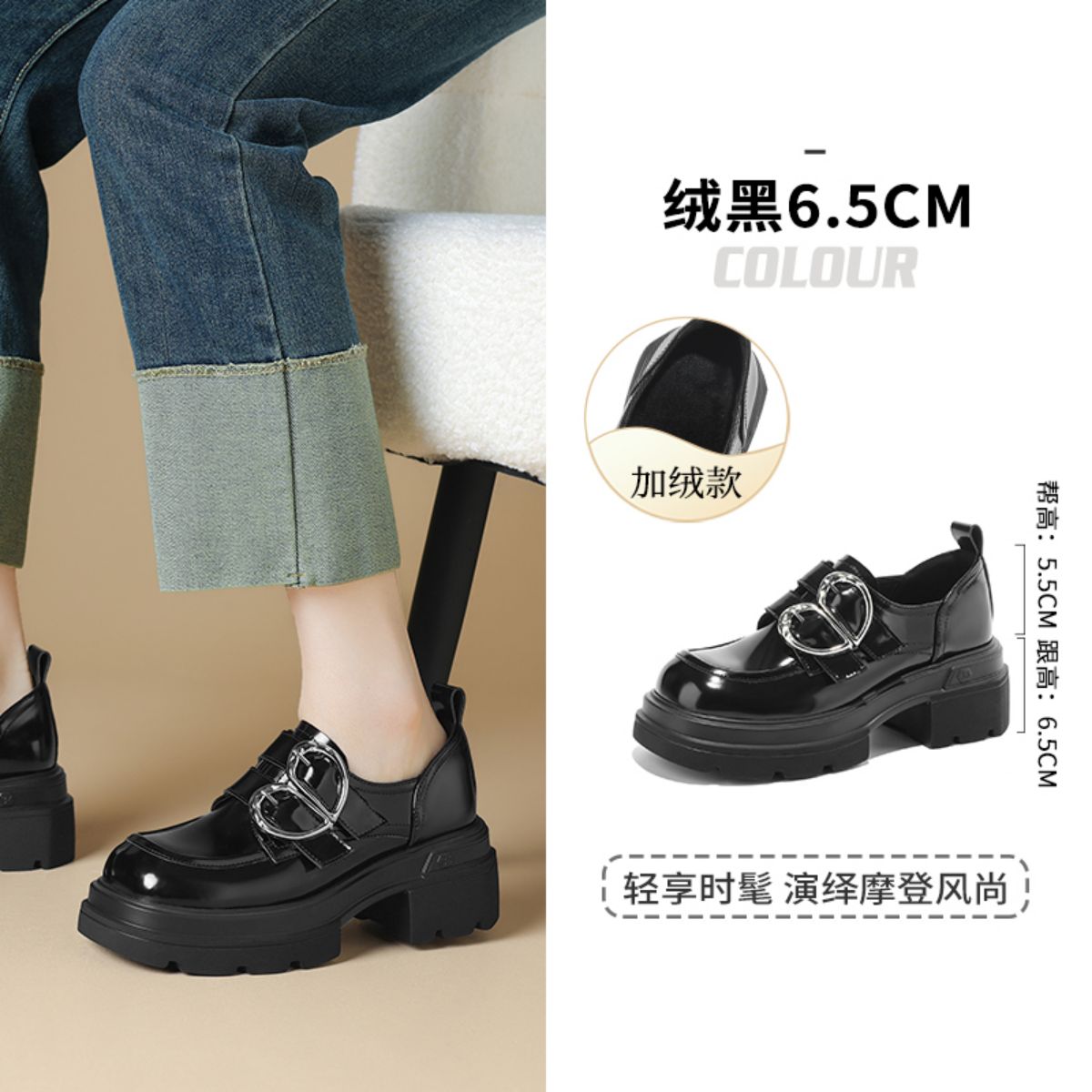 乐福鞋女春季软面英伦风复古通勤女单鞋一脚蹬低跟百搭工作鞋 797402