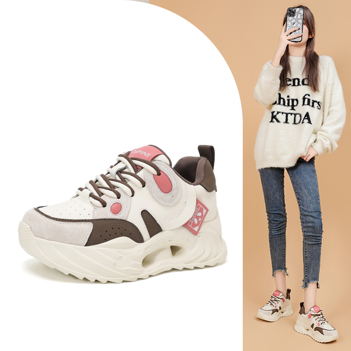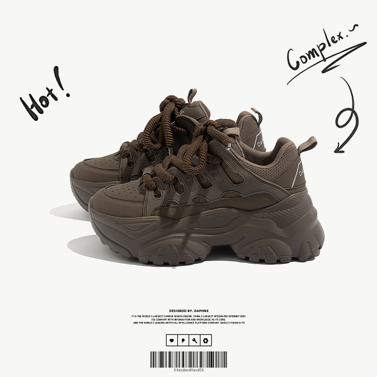 春季复古老爹鞋小众设计厚底女鞋巧克力棕休闲潮流运动鞋网面鞋 720858