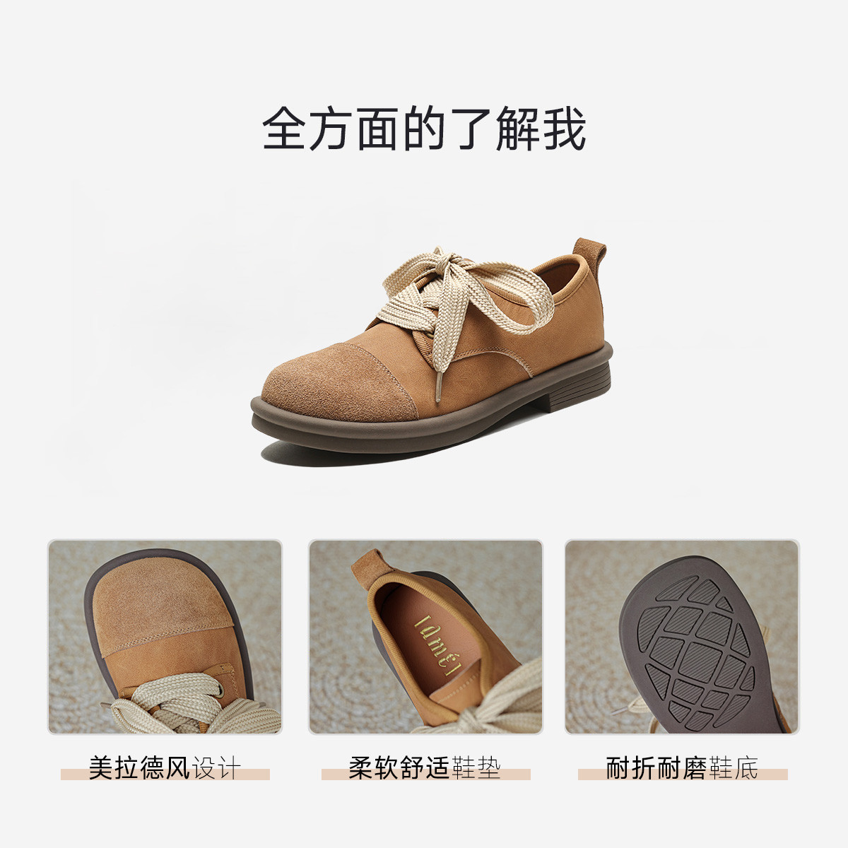 春潮流复古百搭美拉德风拼接扁鞋带娃娃头女单鞋 339009