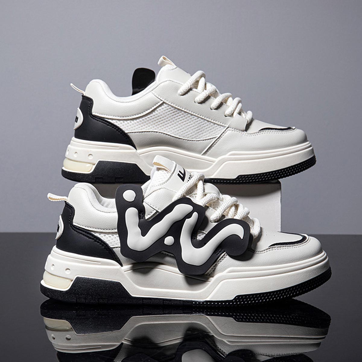 【网面透气】25夏季款男鞋拼色百搭板鞋男厚底镂空网布小白鞋男 782100