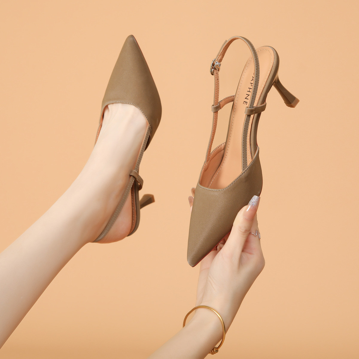 夏季尖头女单鞋女一脚蹬后空凉鞋高跟鞋潮流时装鞋时尚通勤鞋女 660055