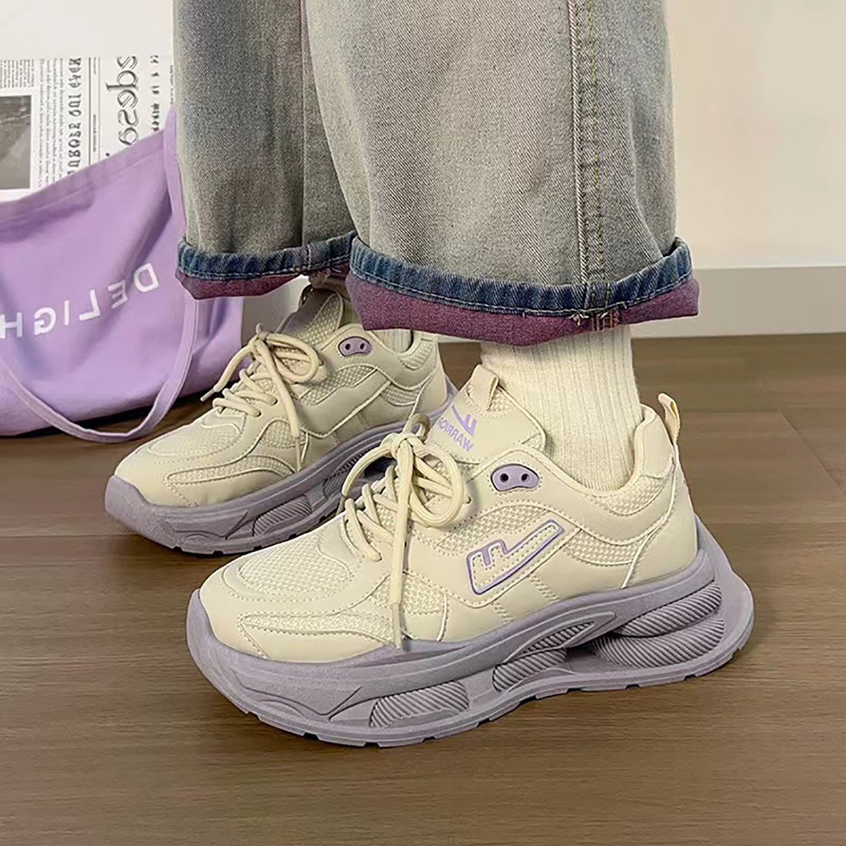 【网布透气】拼色老爹鞋女25夏季款女鞋学生厚底增高运动休闲鞋 751508