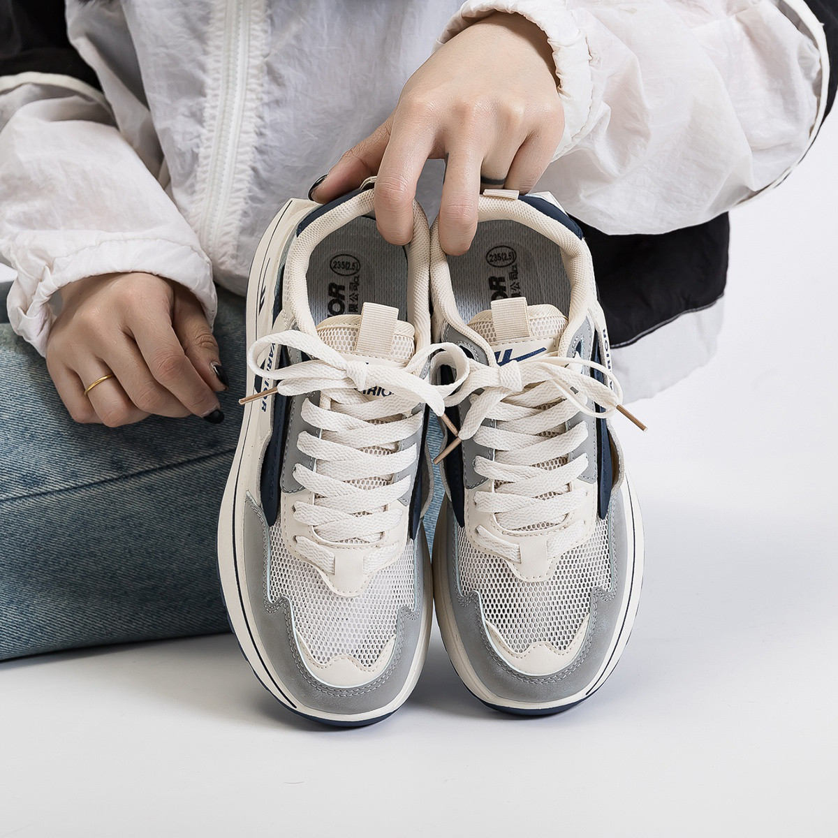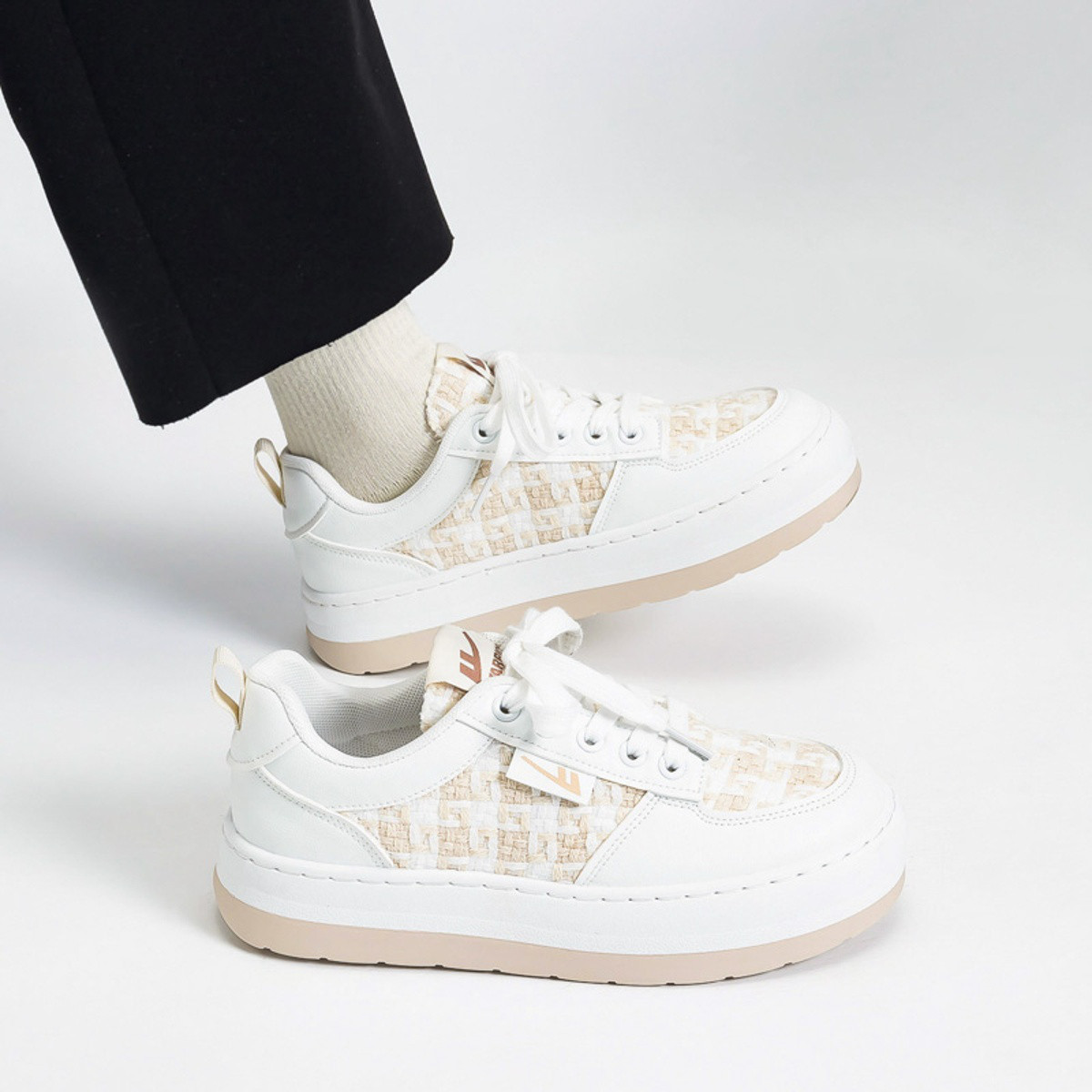 【断码捡漏】学院风拼色厚底板鞋女鞋轻便薄款百搭通勤小白鞋 444547