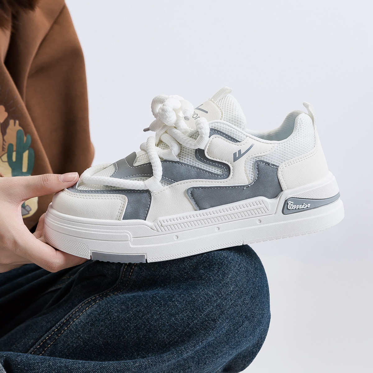 【增高厚底】时尚拼色厚底板鞋女鞋25新款轻便百搭软底小白鞋 760131