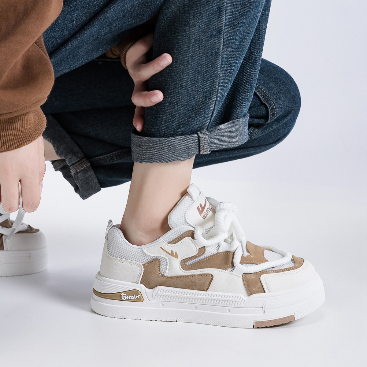 【网面透气】25夏季款男鞋拼色百搭板鞋男厚底镂空网布小白鞋男 782100