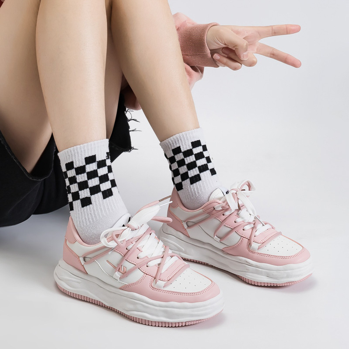 【断码捡漏】夏季拼色时尚板鞋女薄款轻便百搭学院风厚底小白鞋 088195