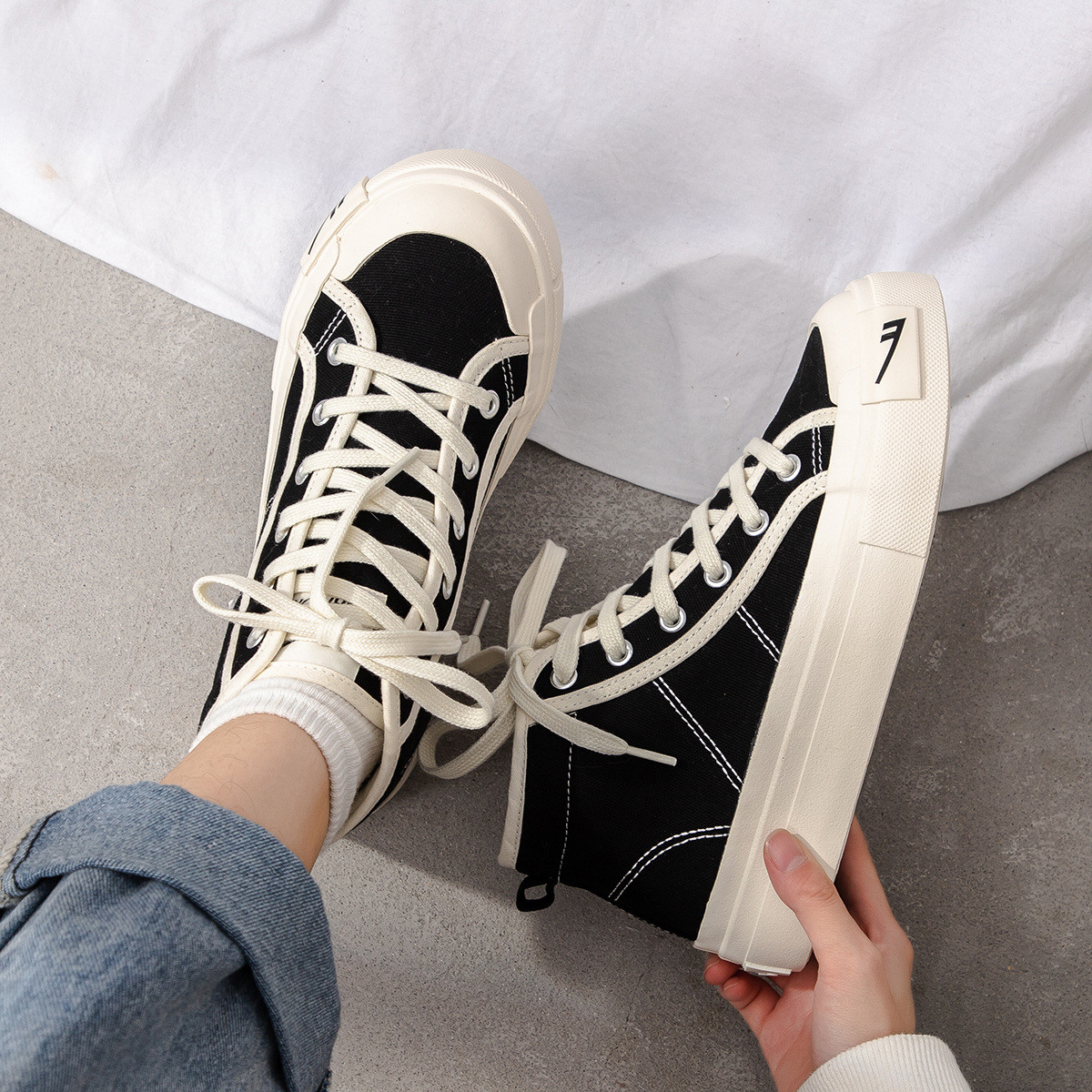 【夏季热卖】韩系时尚女鞋厚底拼接鞋面低帮板鞋轻便舒适休闲鞋 735555