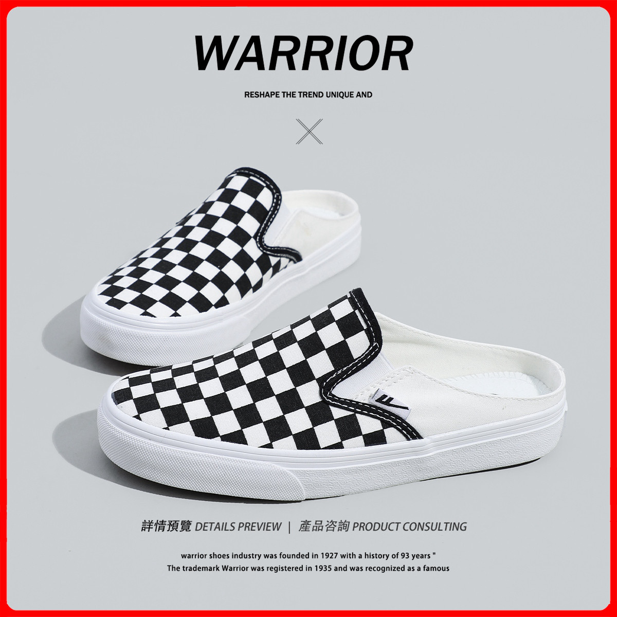 【情侣帆布鞋】25夏季新款女鞋半拖鞋女一脚蹬格纹帆布鞋小白鞋 873876