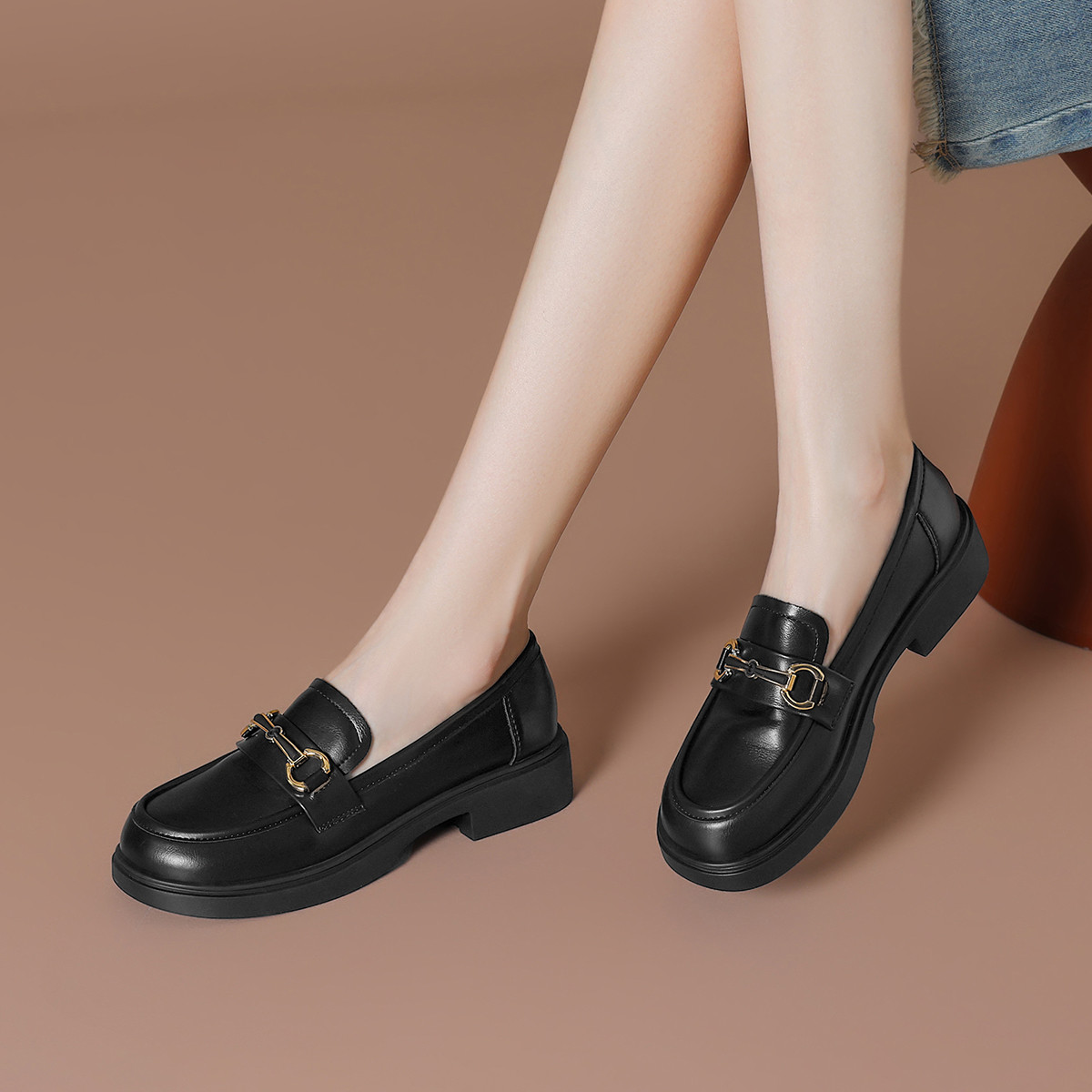 单鞋女士单鞋乐福鞋女一脚蹬女鞋时尚百搭小皮鞋 552399