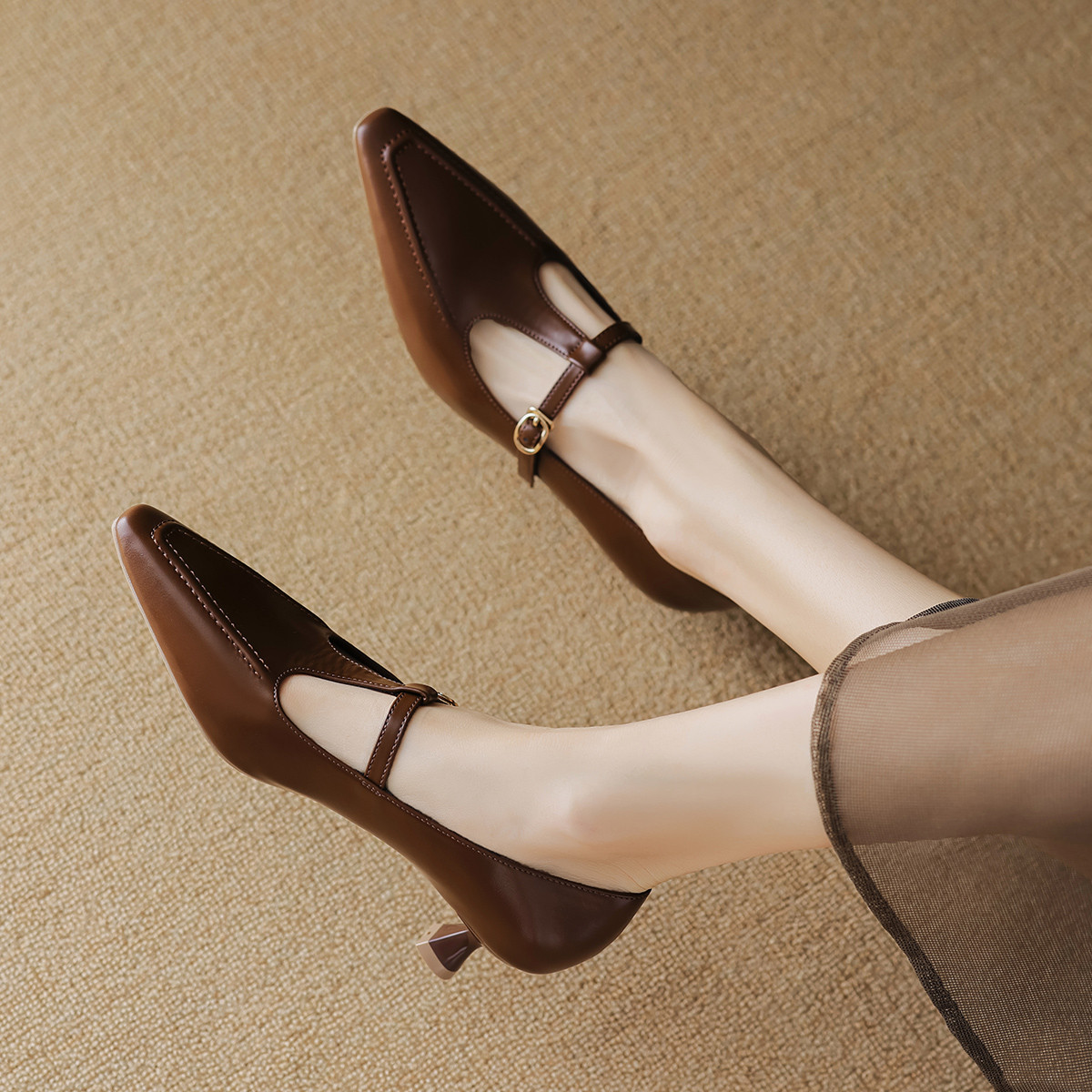 春美拉德色系复古时尚“丁”字带纯色深口时装鞋女单鞋 170049