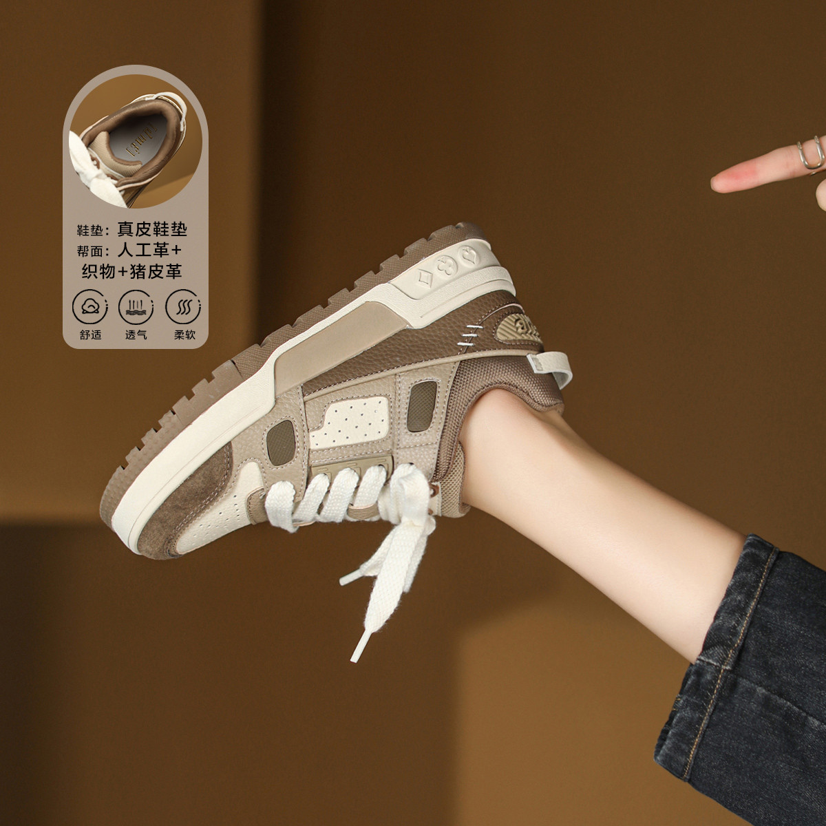 春时潮流复古拼色百搭女休闲鞋板鞋 458689