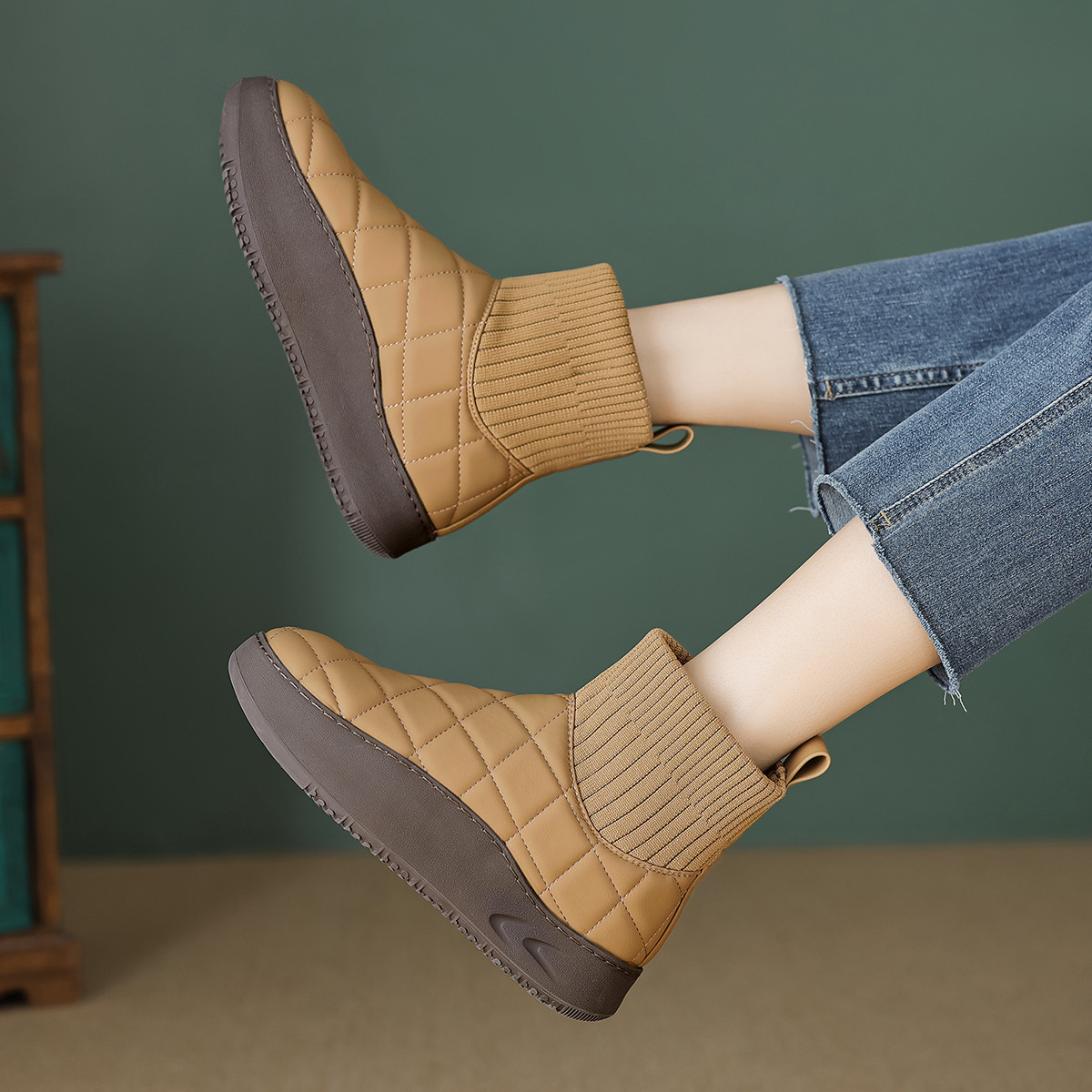 春秋美拉德色系百搭格纹厚底拼接保暖通勤鞋 407809
