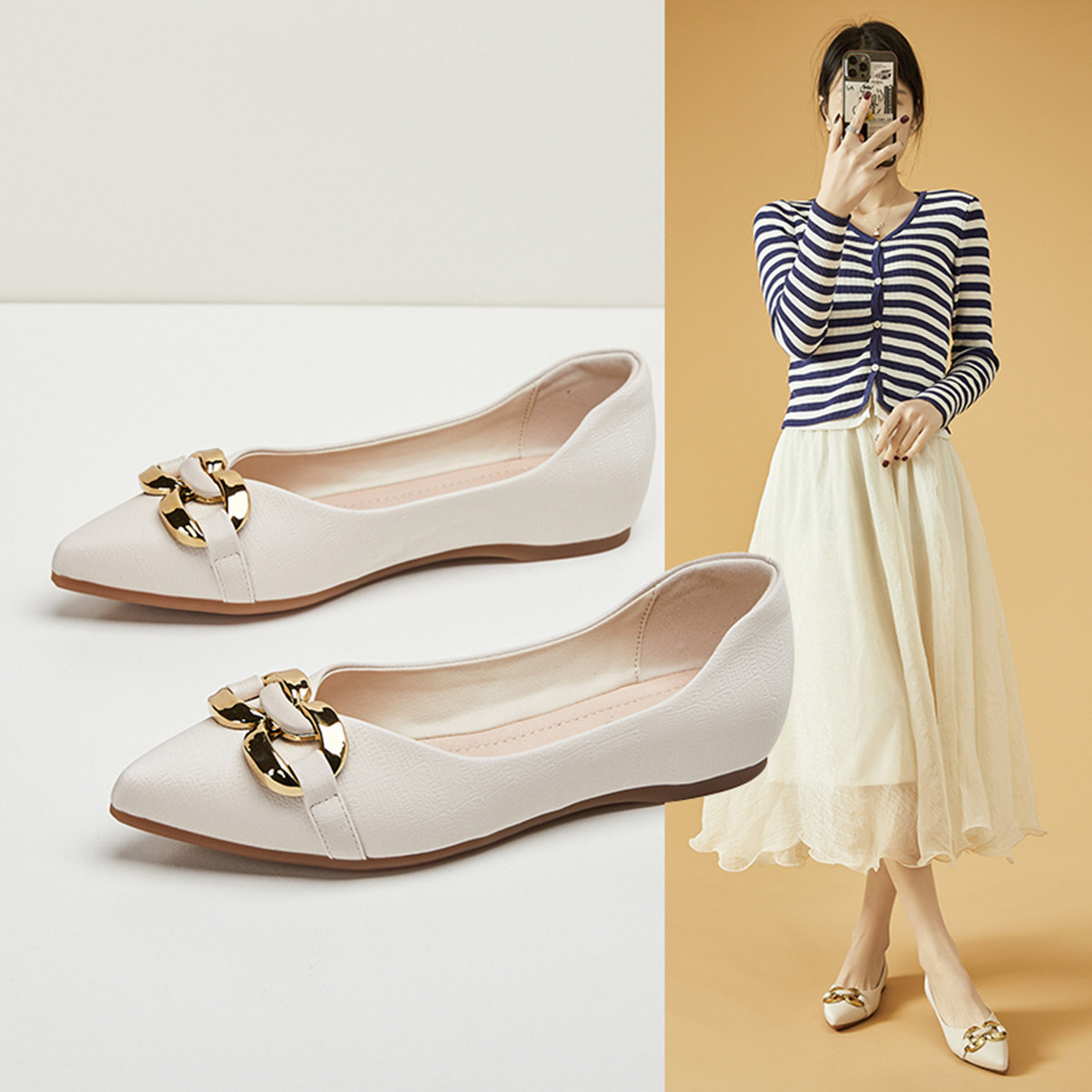 【经典饰扣】25新款夏真皮垫舒适平底女单鞋百搭通勤鞋婚鞋女鞋 702423