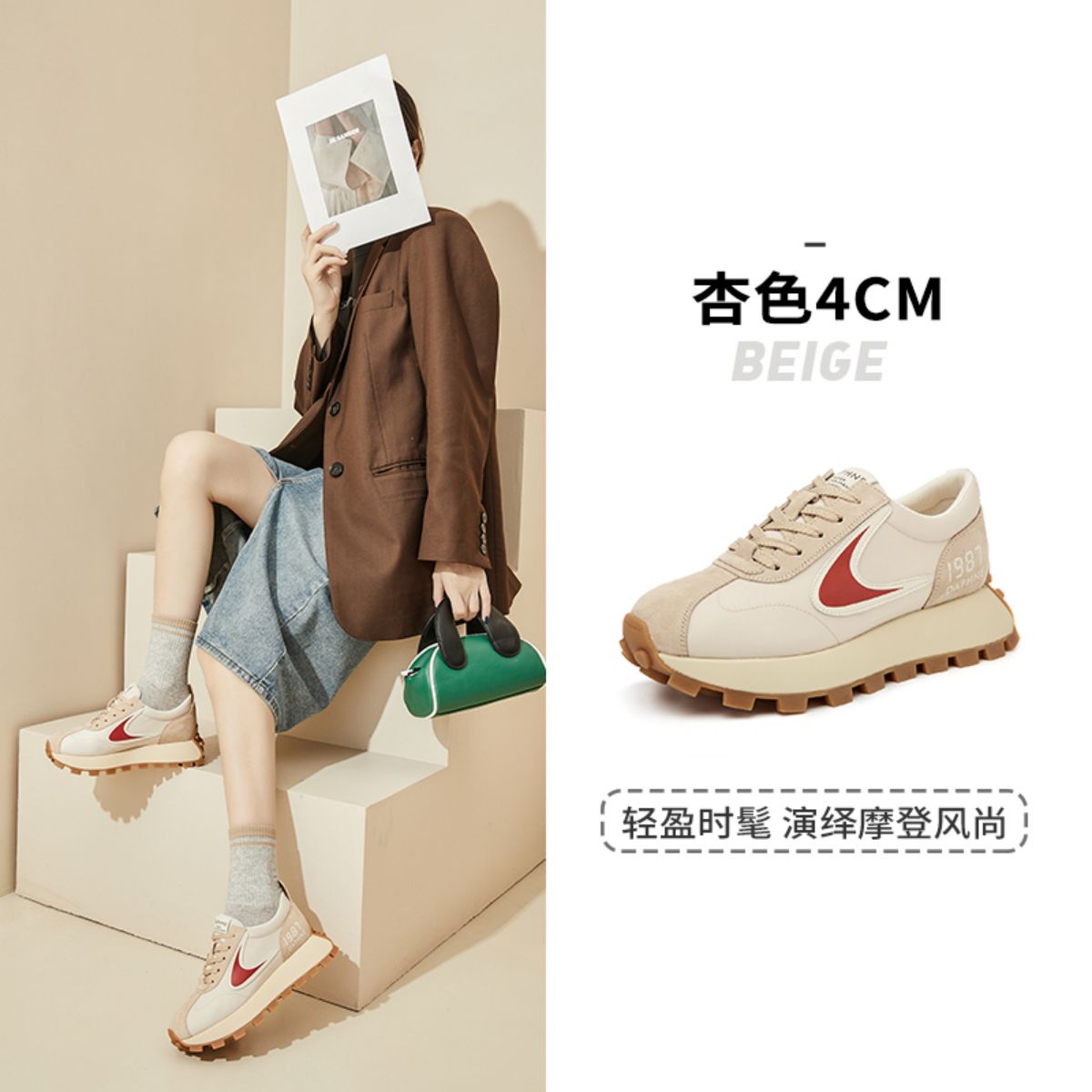 百丽女鞋子运动鞋春季轻便软底休闲鞋厚底老爹鞋 648410