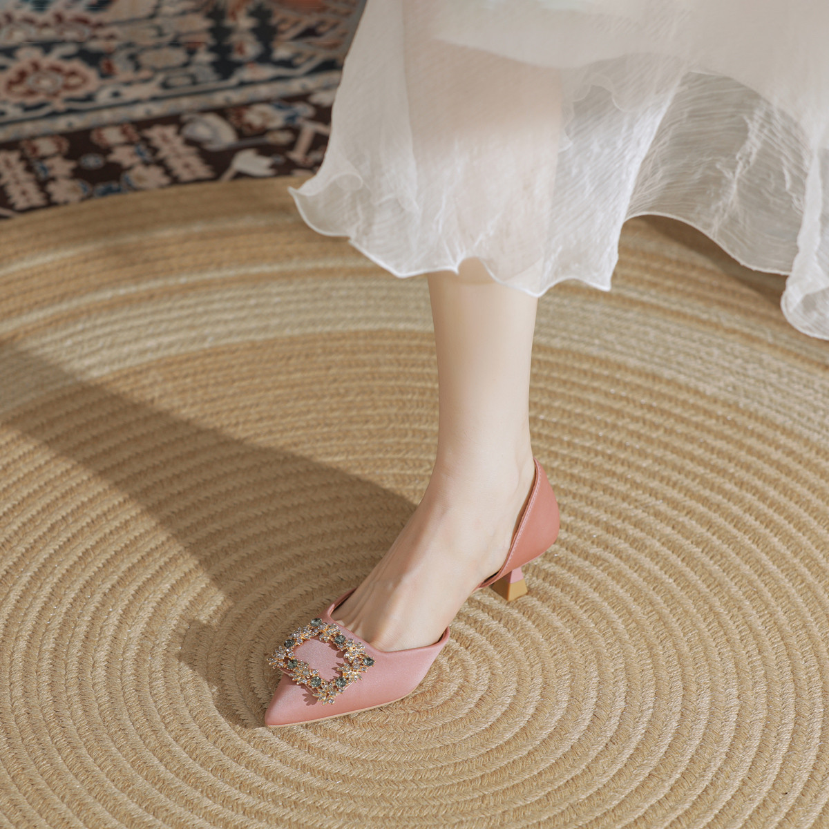 夏季新中式国风后空凉鞋女一字带高跟鞋轻便细跟时尚通勤鞋时装鞋 139351