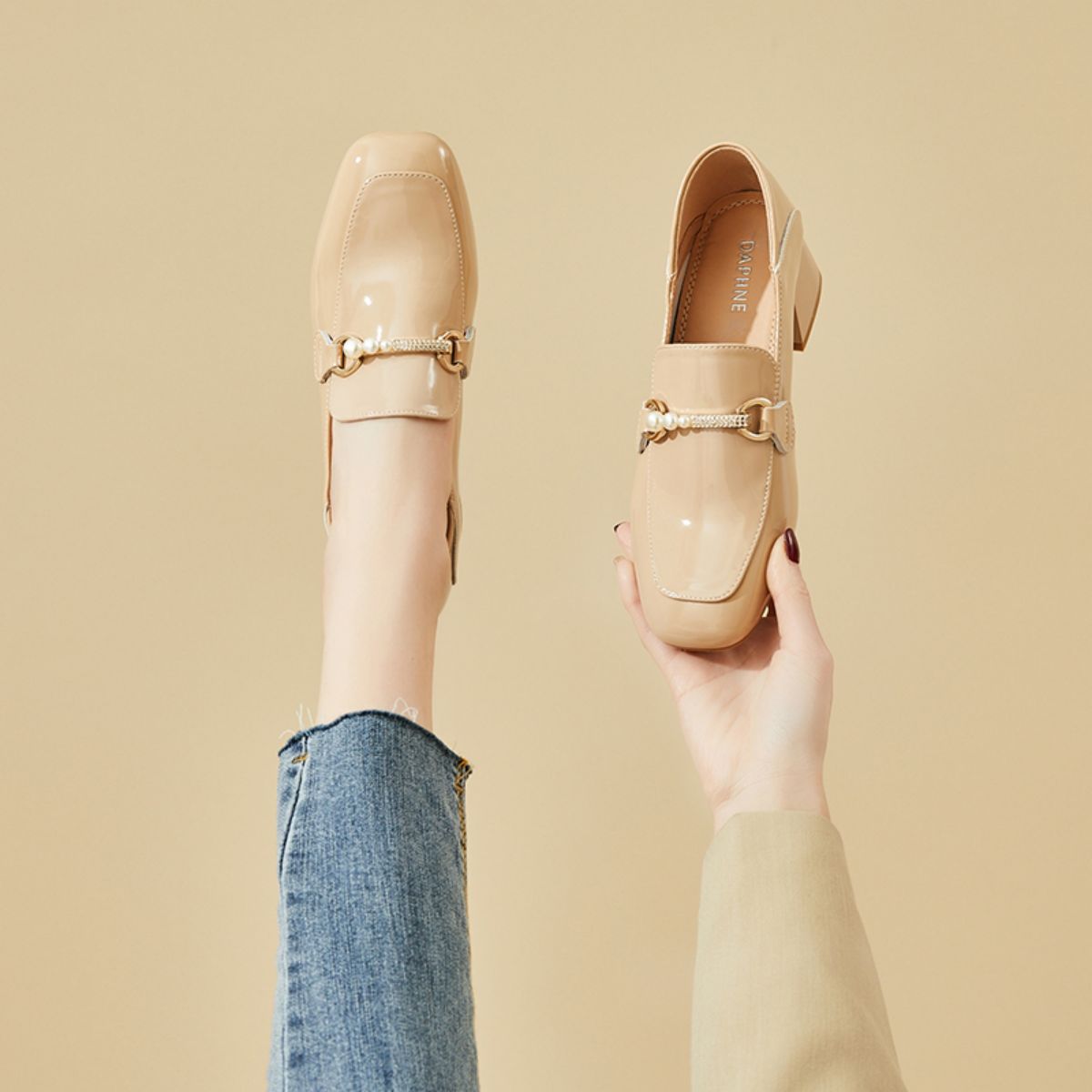 【小个子增高】春季时装高跟厚底乐福女鞋英伦风一脚蹬复古女单鞋 410650