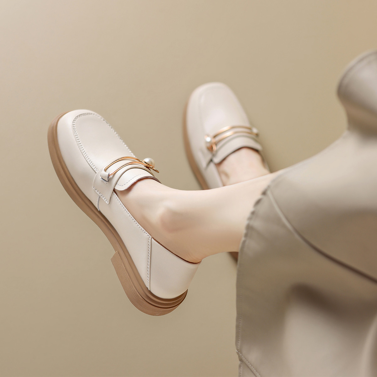 【珍珠扣饰】两穿一脚蹬女鞋春秋英伦风小皮鞋平底鞋乐福鞋女单鞋 411200