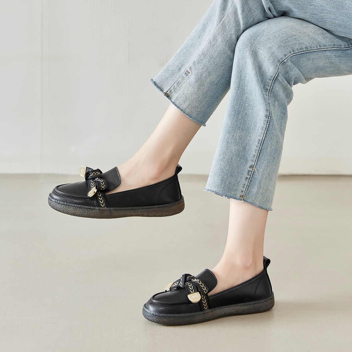 【一鞋五穿】精致蝴蝶结一脚蹬女鞋气质小皮鞋女乐福鞋子女单鞋女 432960