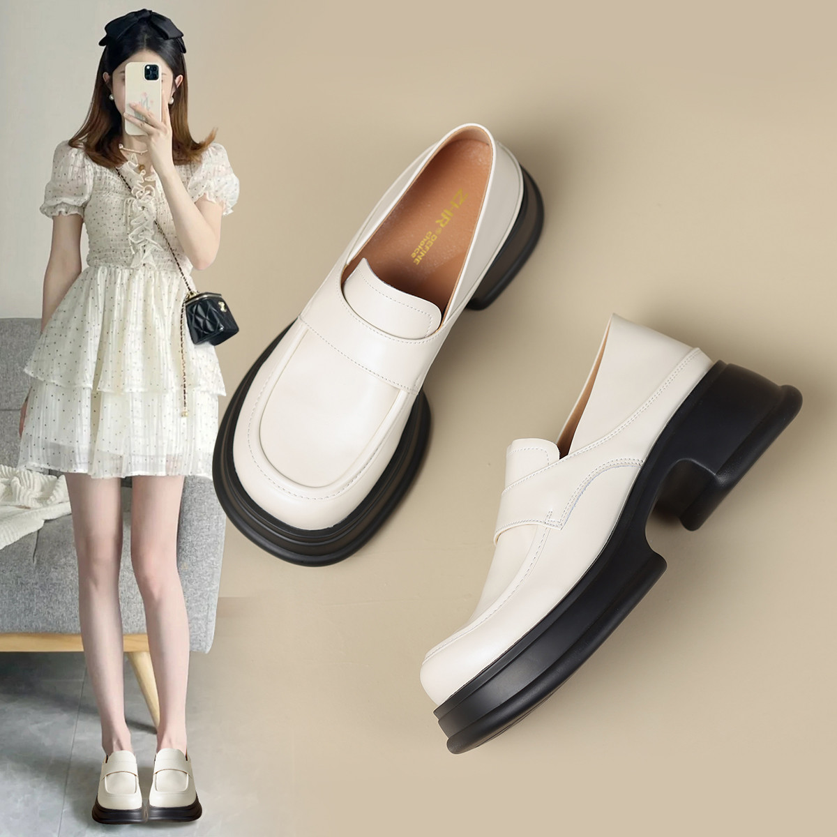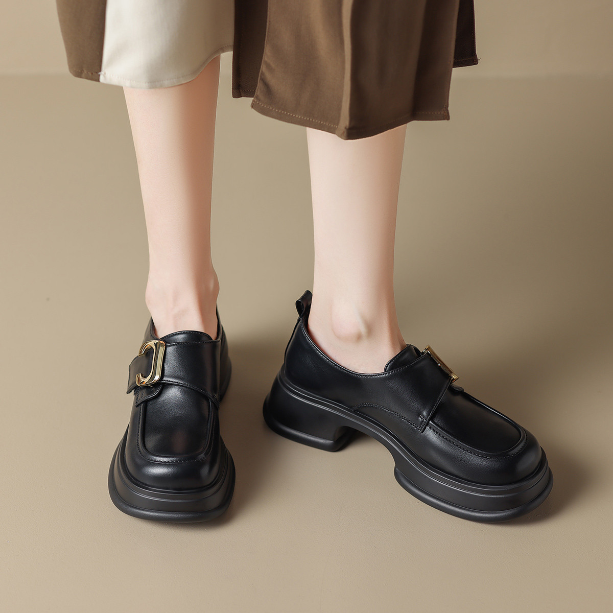 【秒高5.5】学院风春秋款小皮鞋女一脚蹬女鞋厚底乐福鞋女单鞋 629440