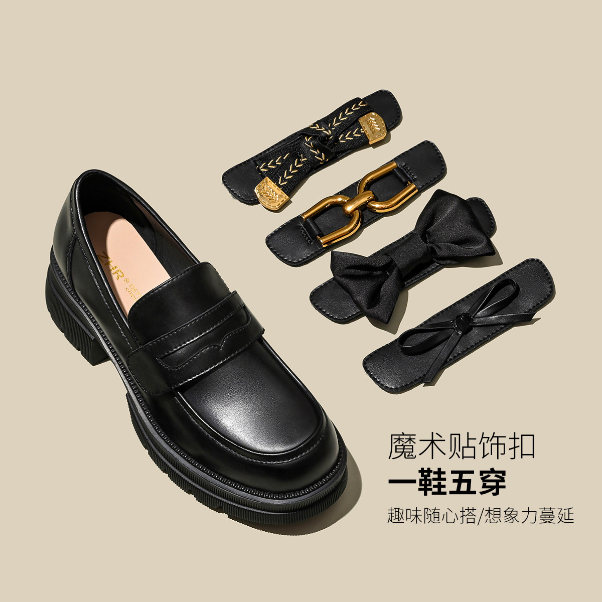 【C形字母+魔术贴】时尚小皮鞋子女士单鞋春秋厚底乐福鞋女单鞋 904512