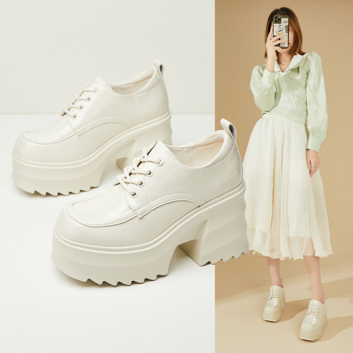 【小个子增高】春季时装高跟厚底乐福女鞋英伦风一脚蹬复古女单鞋 441818