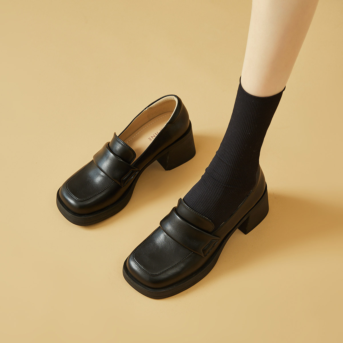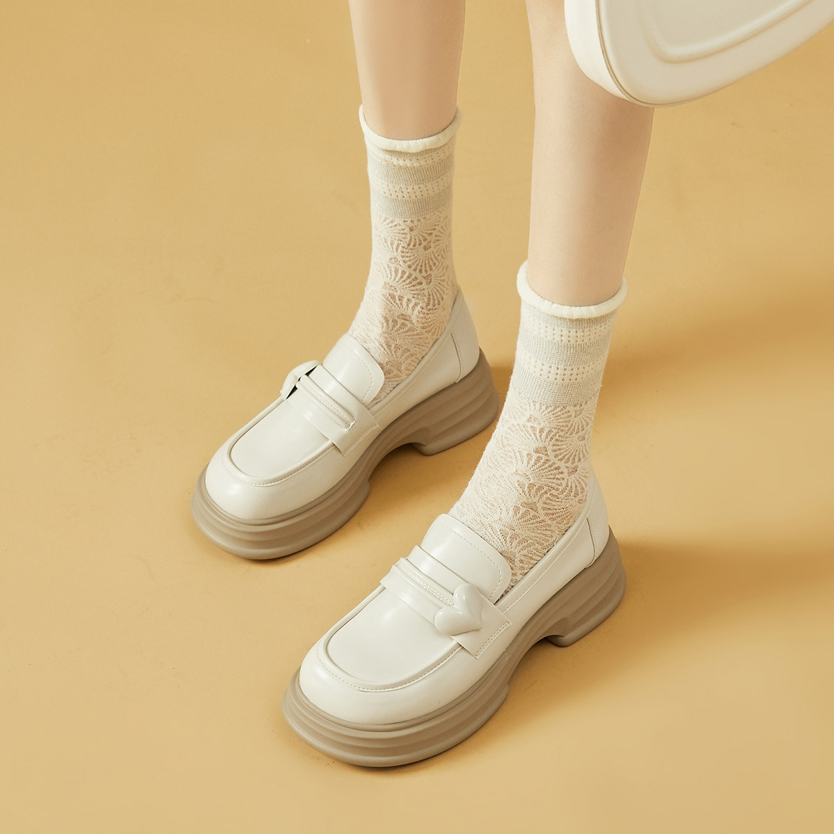 【秒增5CM】小爱心厚底乐福鞋女复古粗跟英伦风鞋子女单鞋女鞋 043610