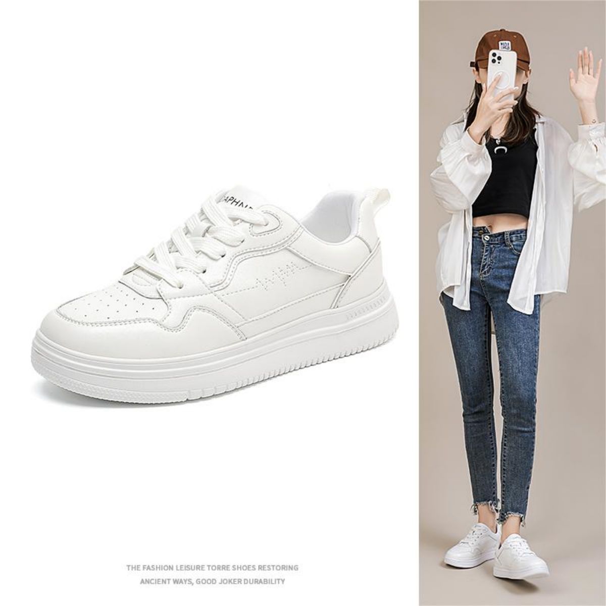 春夏简约风小白鞋女百搭厚底板鞋时尚通勤鞋舒适透气运动休闲鞋 025943