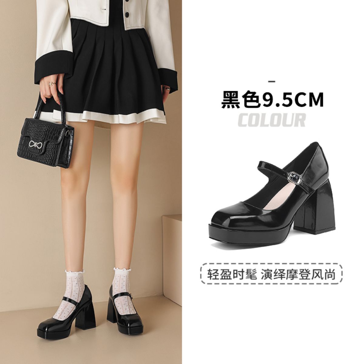 【增高9.5CM】夏季女单鞋粗跟百搭玛丽珍女鞋高跟鞋时尚鞋女 041111