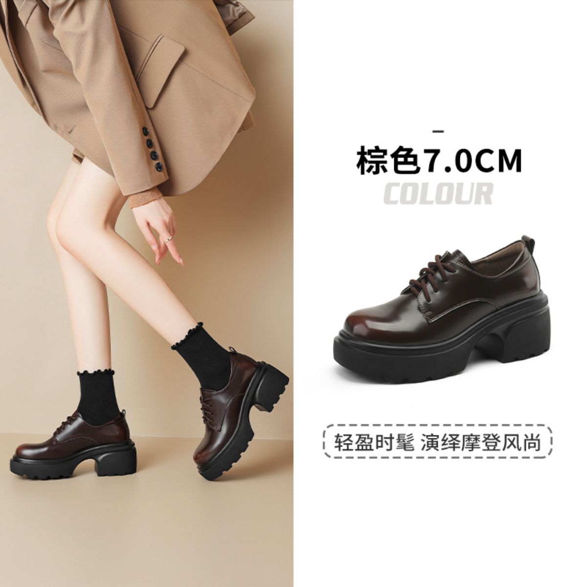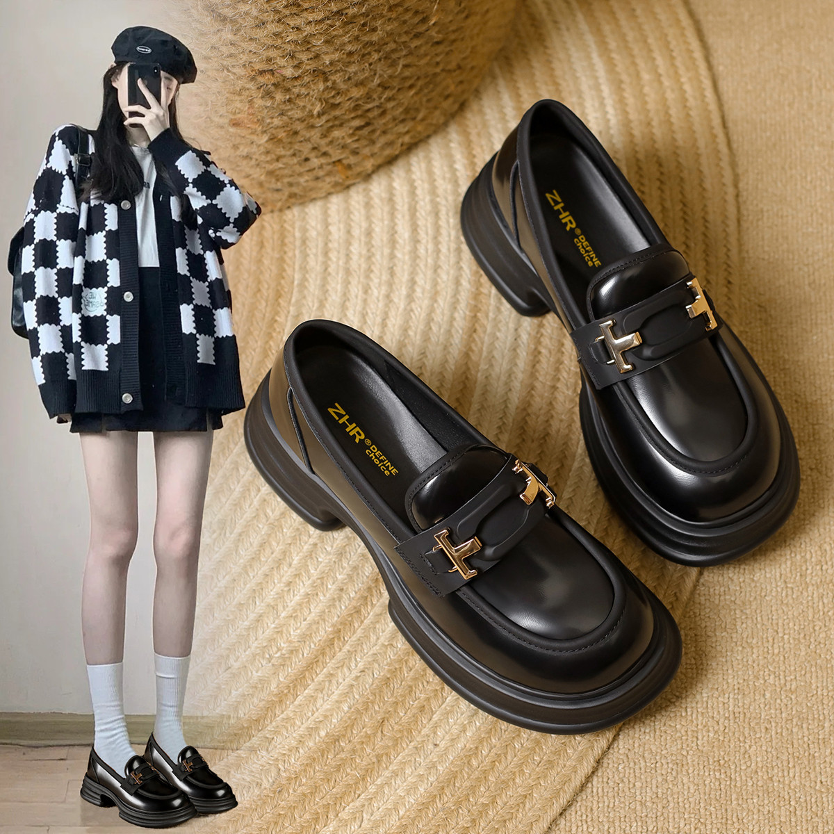 【牛剖层革】复古英伦风小皮鞋女舒适百搭推荐厚底乐福鞋女单鞋女 692032