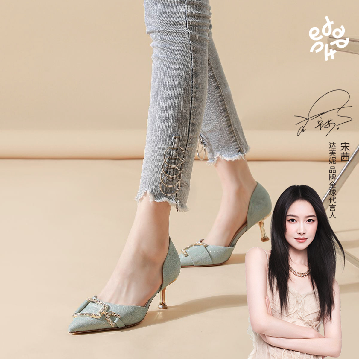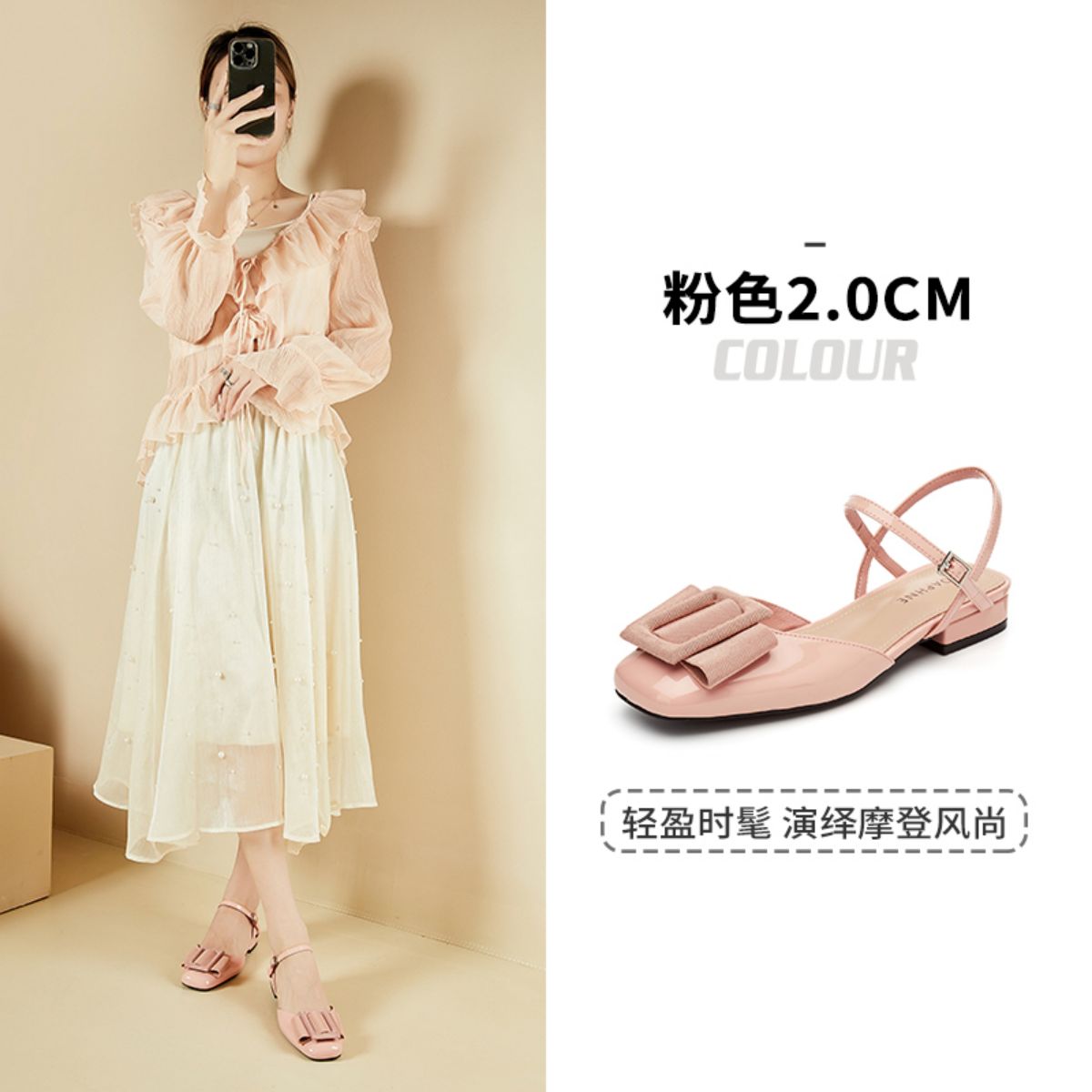 夏季新中式国风后空凉鞋女一字带高跟鞋轻便细跟时尚通勤鞋时装鞋 139351