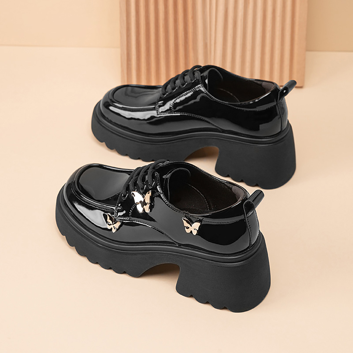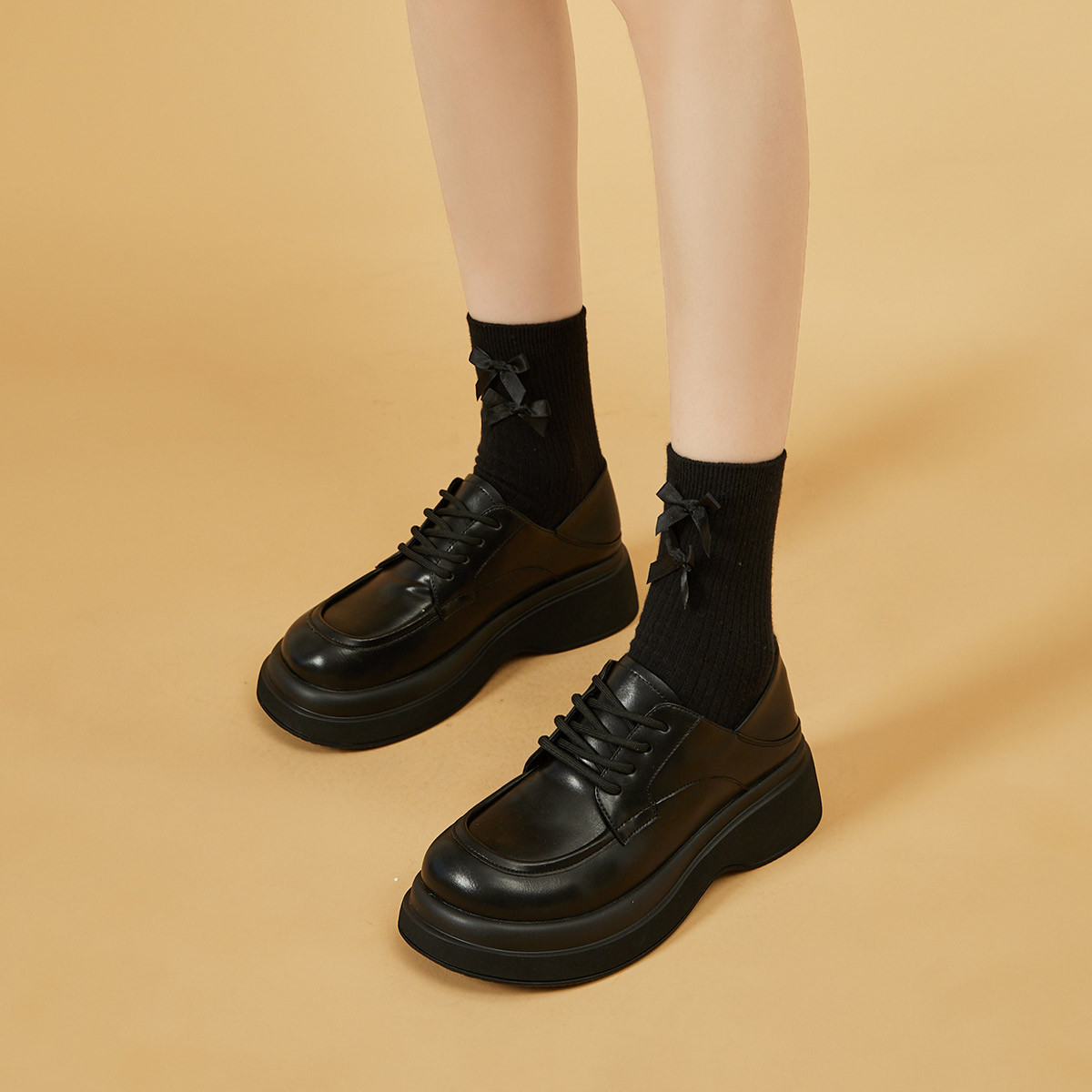 【厚底增高】乐福鞋系带英伦风蝴蝶装饰春秋通勤百搭松糕单鞋女 345114