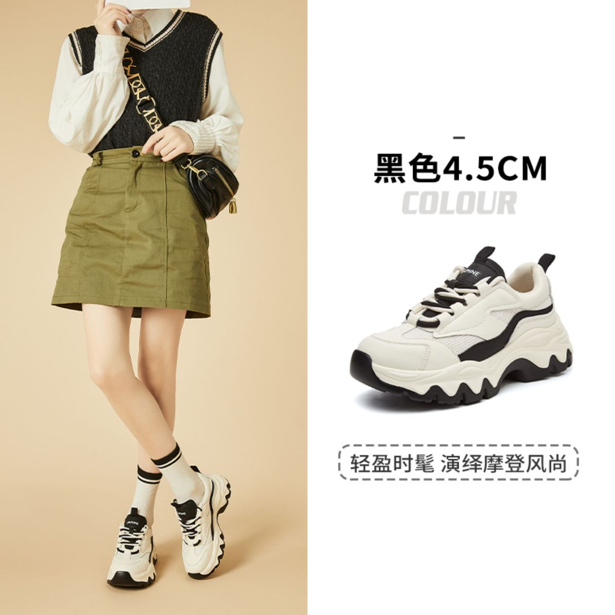 百丽女鞋子运动鞋春季轻便软底休闲鞋厚底老爹鞋 648410