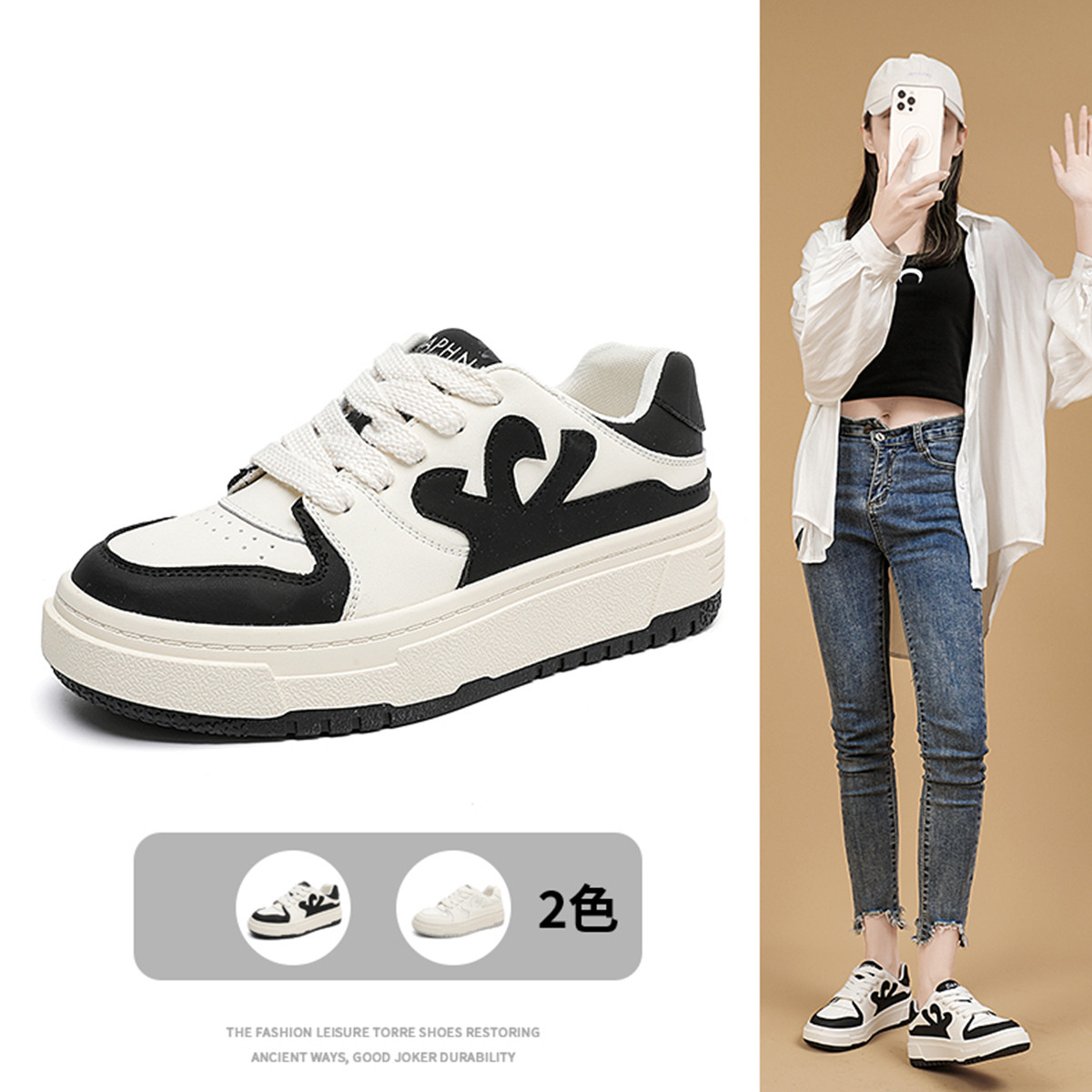 春夏潮酷小白鞋女百搭时尚板鞋撞色设计熊猫鞋舒适透气休闲鞋女鞋 464407