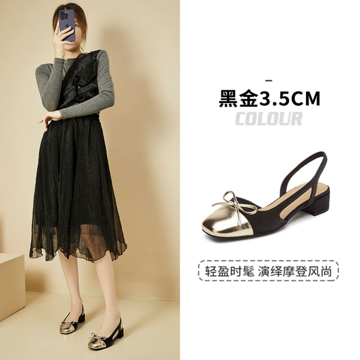 夏季新中式国风后空凉鞋女一字带高跟鞋轻便细跟时尚通勤鞋时装鞋 139351