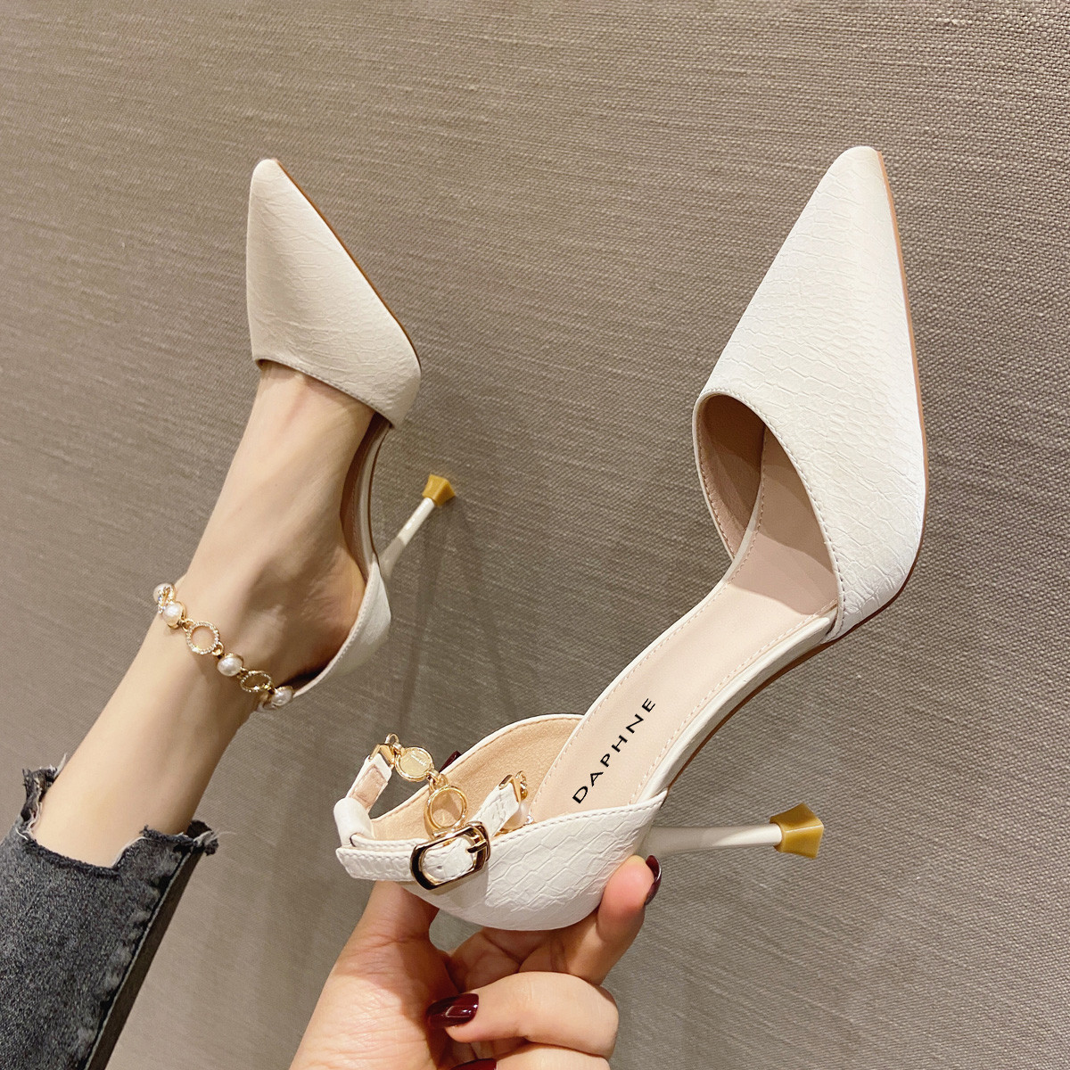 法式一字扣高跟鞋女春夏2025气质尖头中空宴会礼服细跟单鞋女 848791