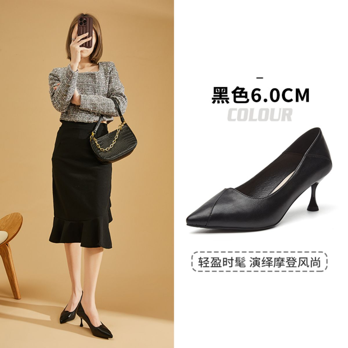 夏季尖头细跟高跟鞋百搭女单鞋气质优雅时装鞋女职业商务通勤鞋女 963351